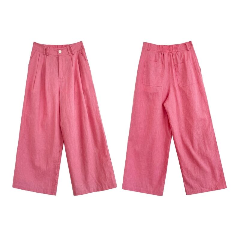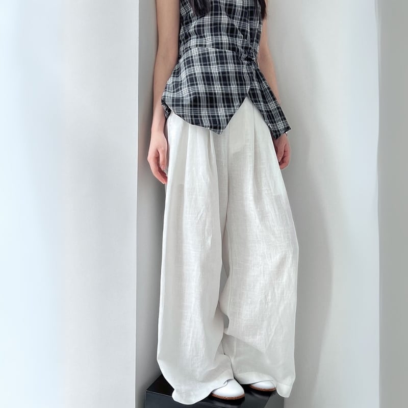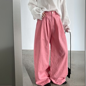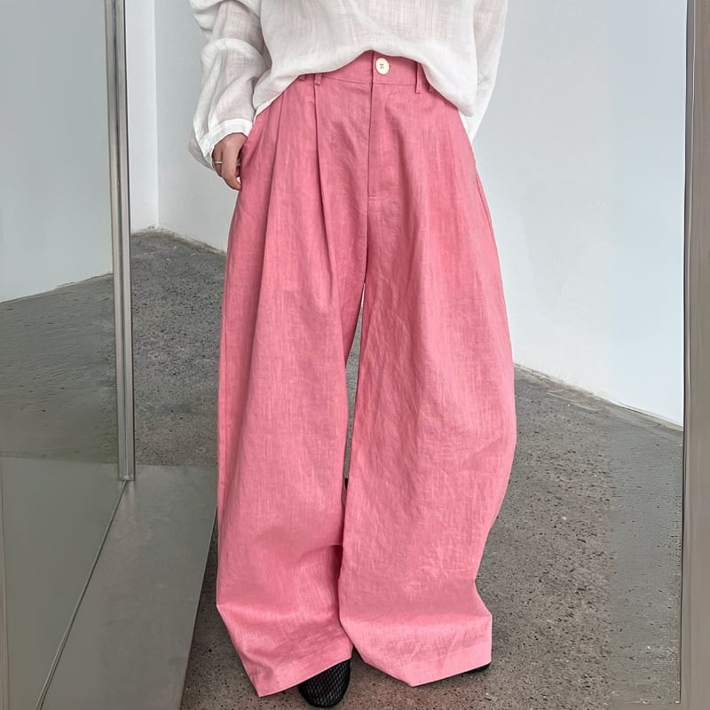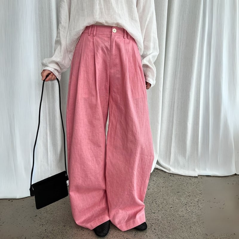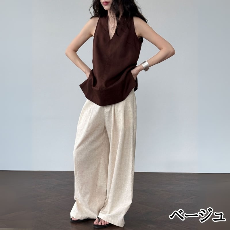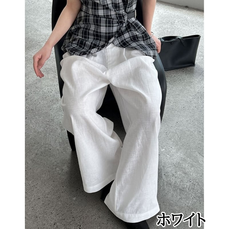 リネンミックス ハイウエスト ワイドレッグパンツ ◆3col 204312