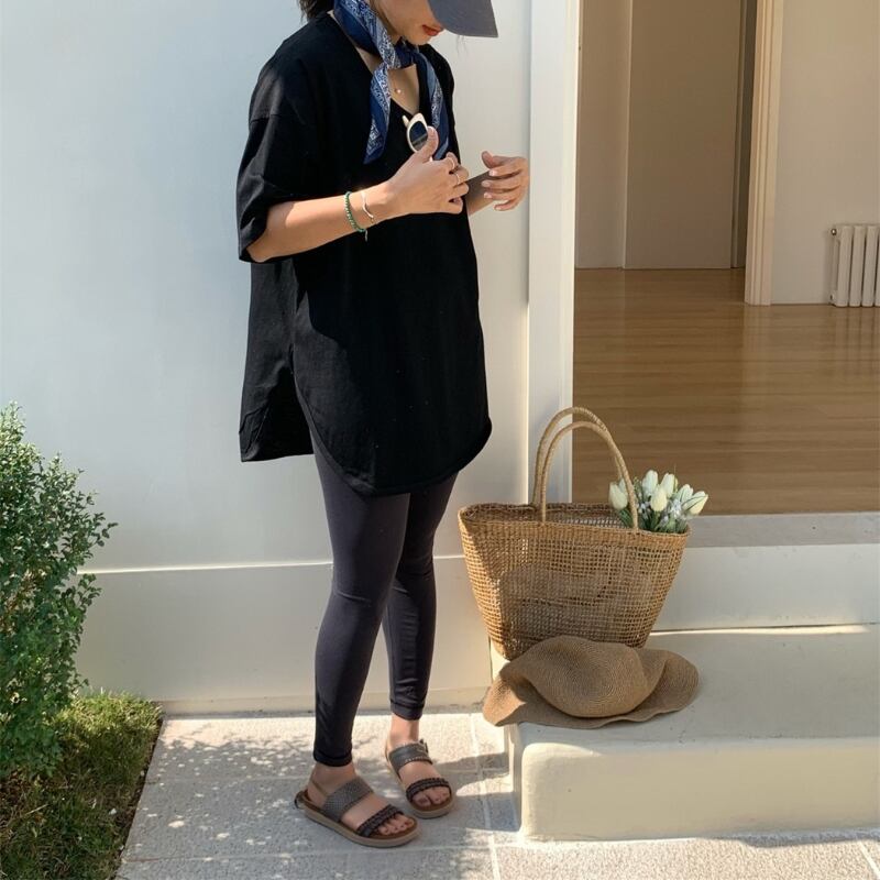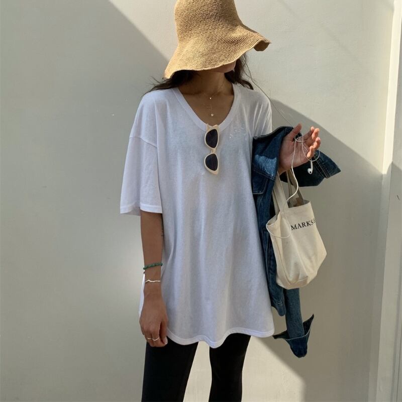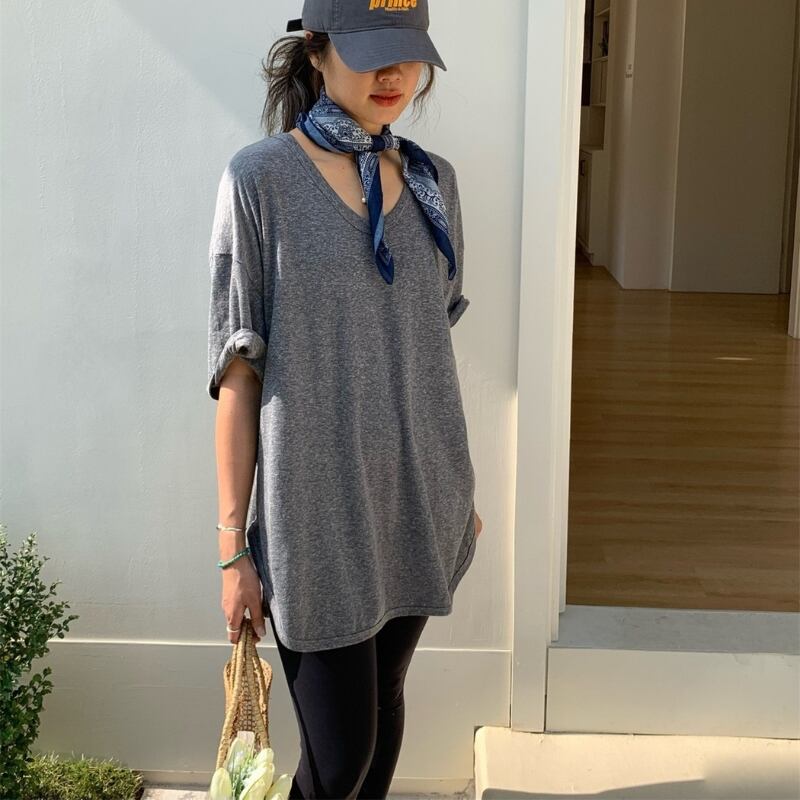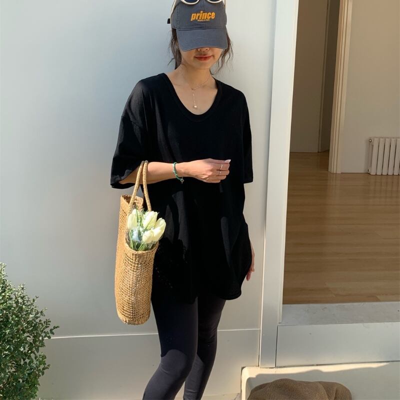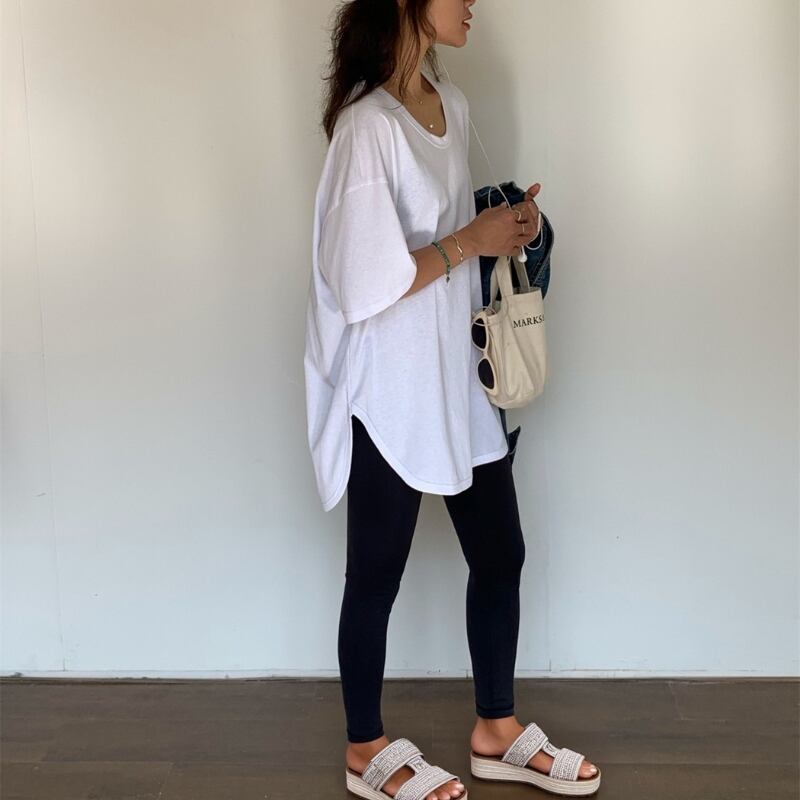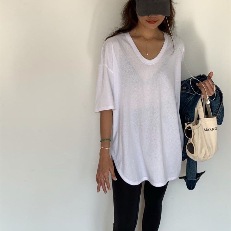 サイドスリット オーバーサイズ Uネック半袖Tシャツ ◆3color 204381