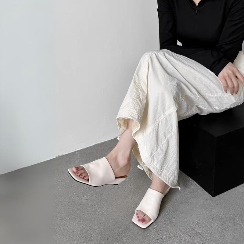 スクエアトゥ ウェッジヒール ミュールサンダル ◆2color 204387