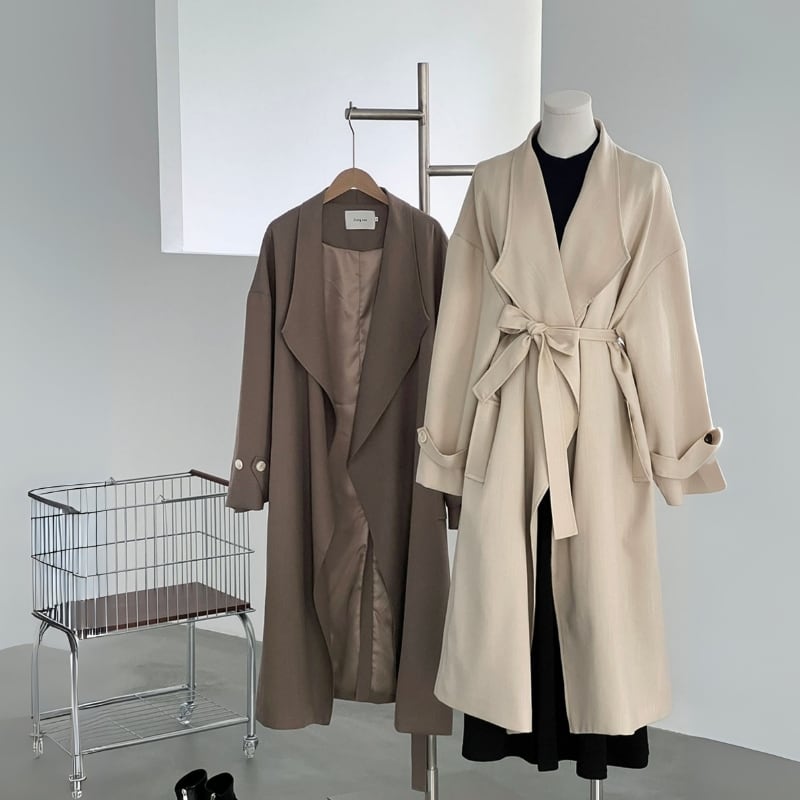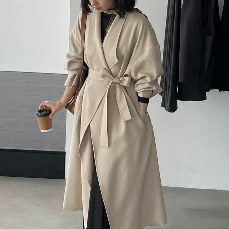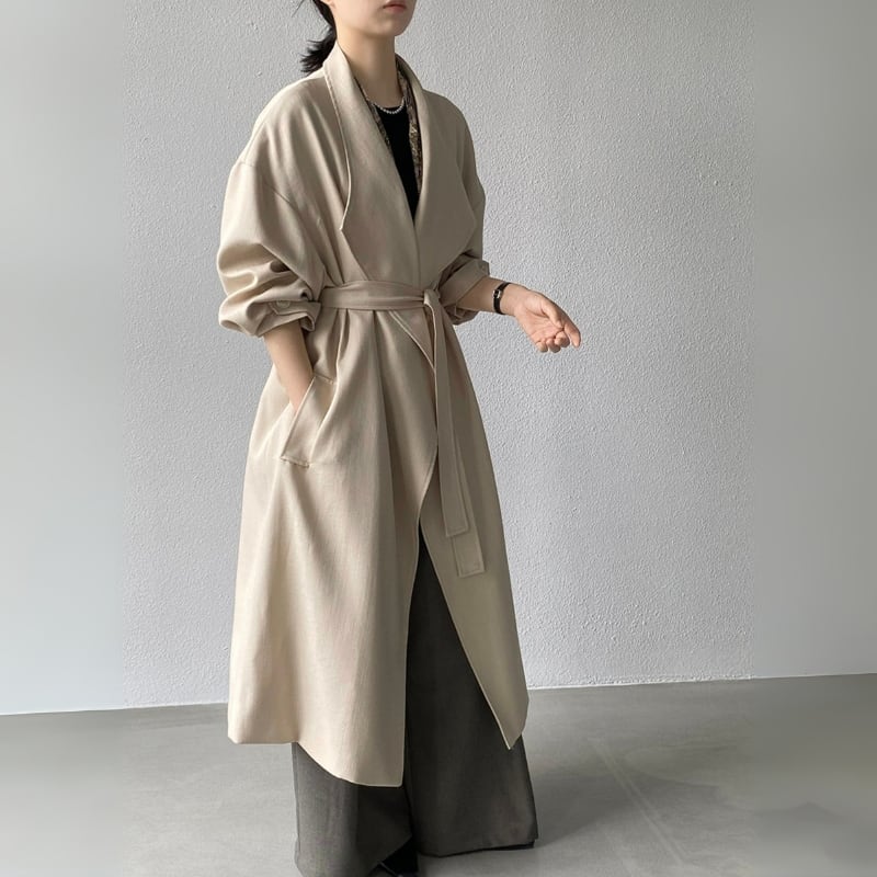 ウエストベルト ドロップショルダー ロングコート ◆2color 204400