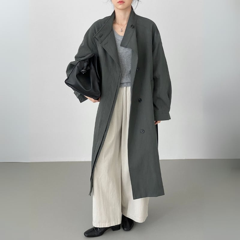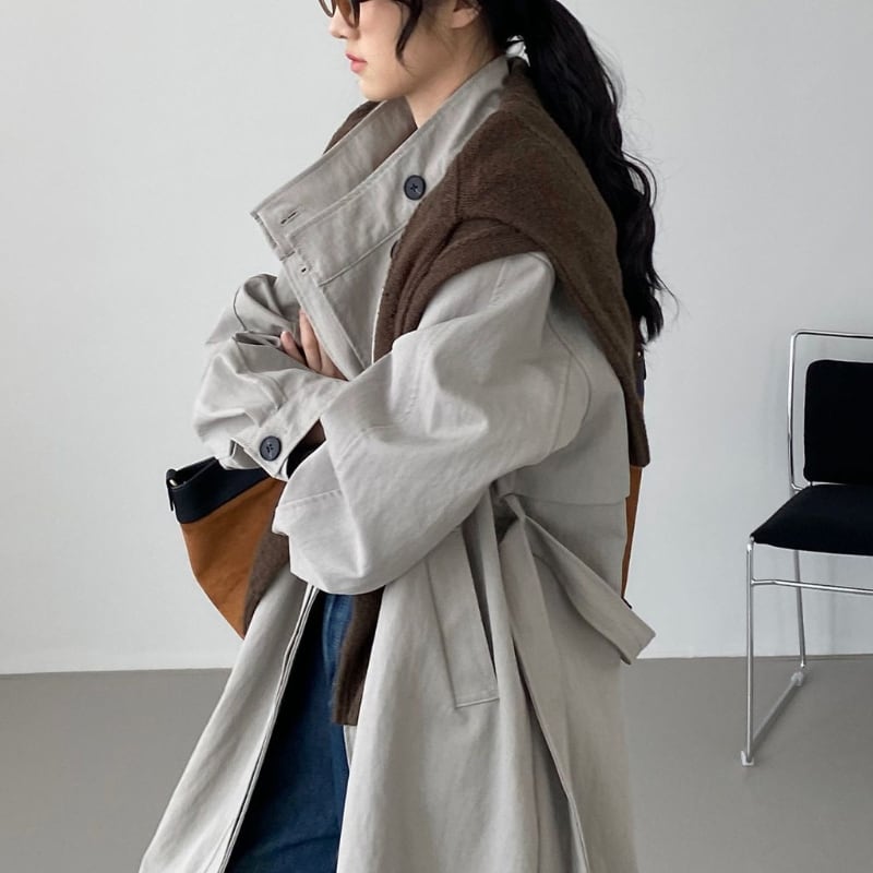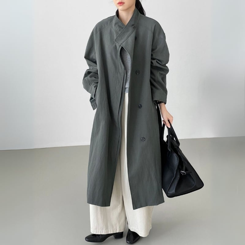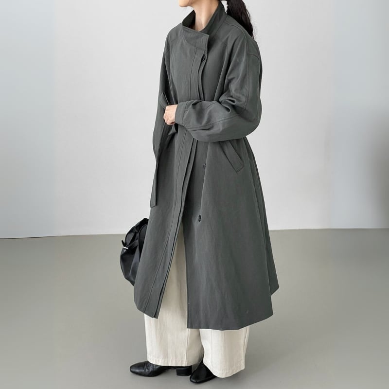 スタンドカラー シングルブレストロングコート ◆2color 204412