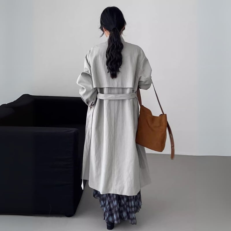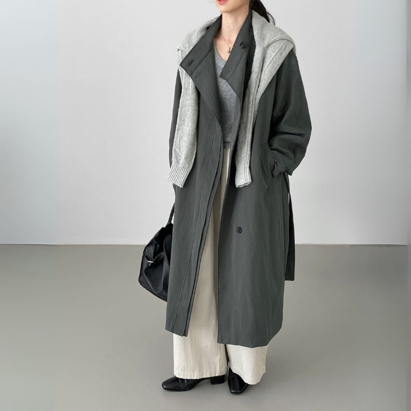ロング丈で存在感がありながらも、シンプルで着回ししやすいデザインのロングコート。 ボタンを留めてきちんと感を出したり、軽く羽織ってこなれた雰囲気にしたりと、気分に合わせてアレンジを楽しめます。
