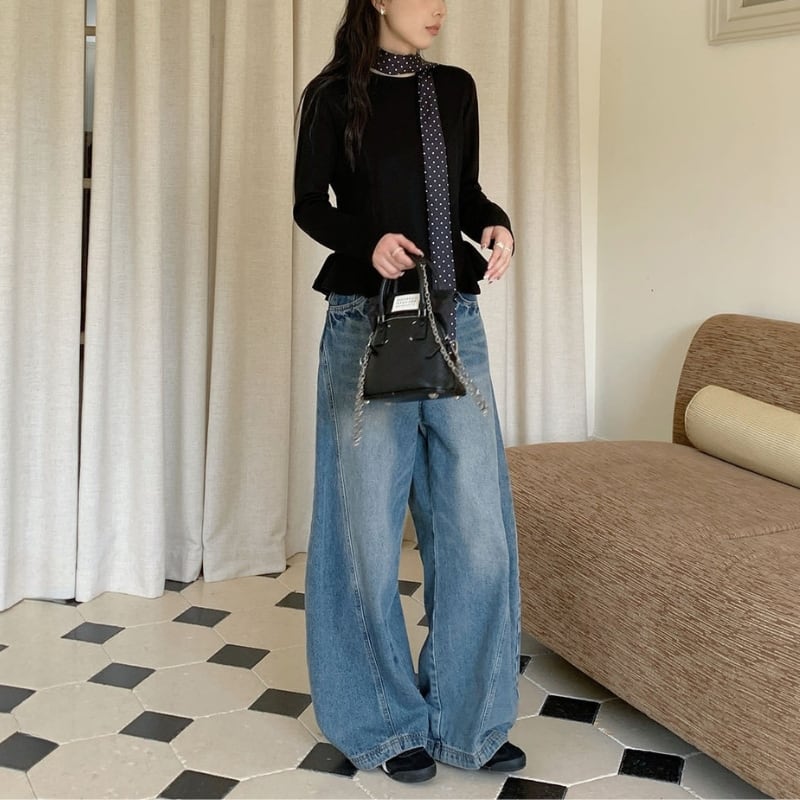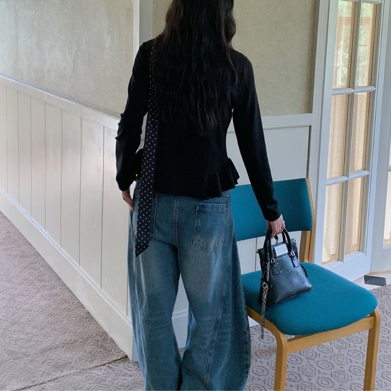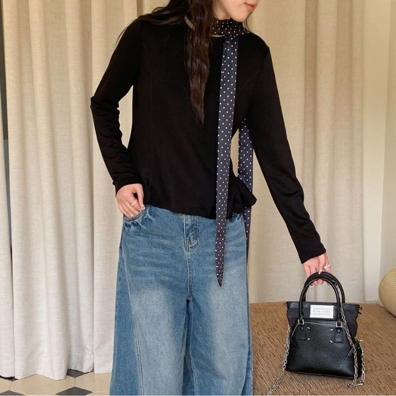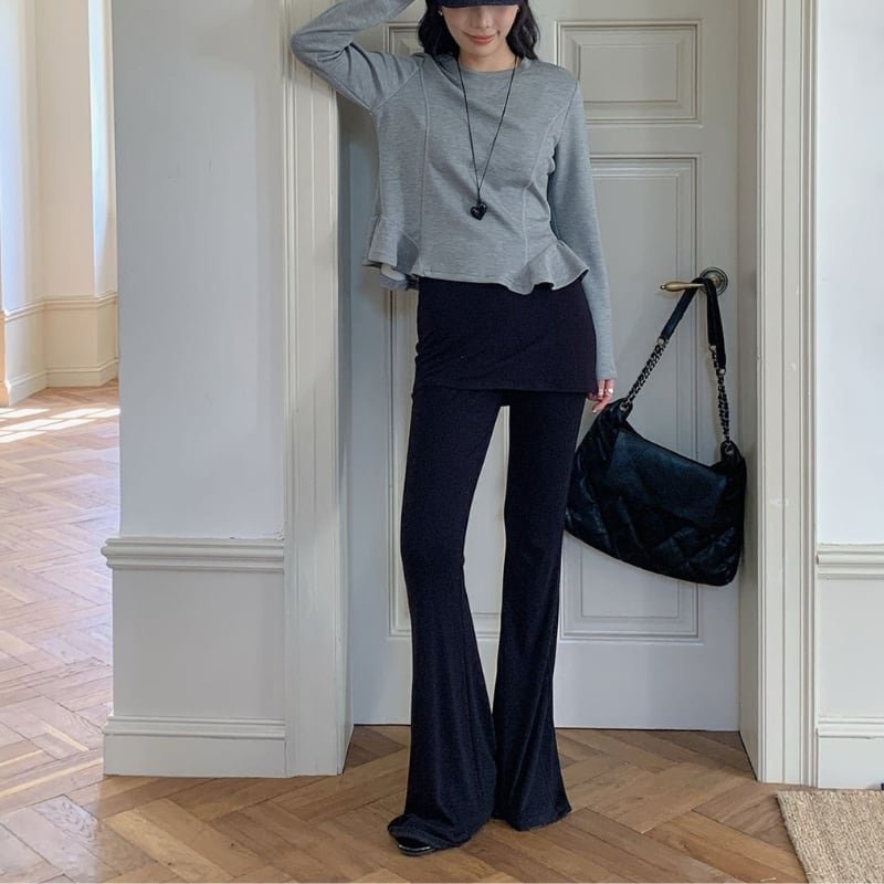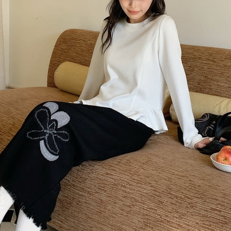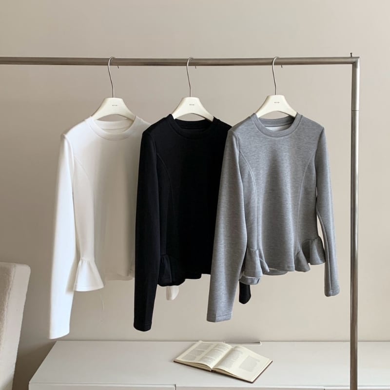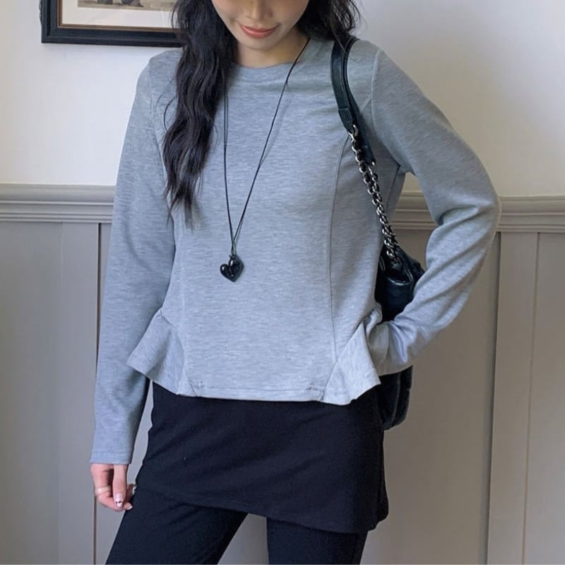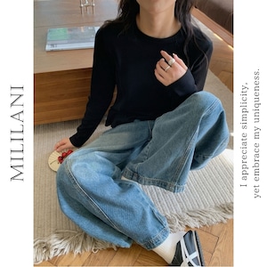 ラウンドネック フレアヘム 長袖カットソー ◆3color 204414