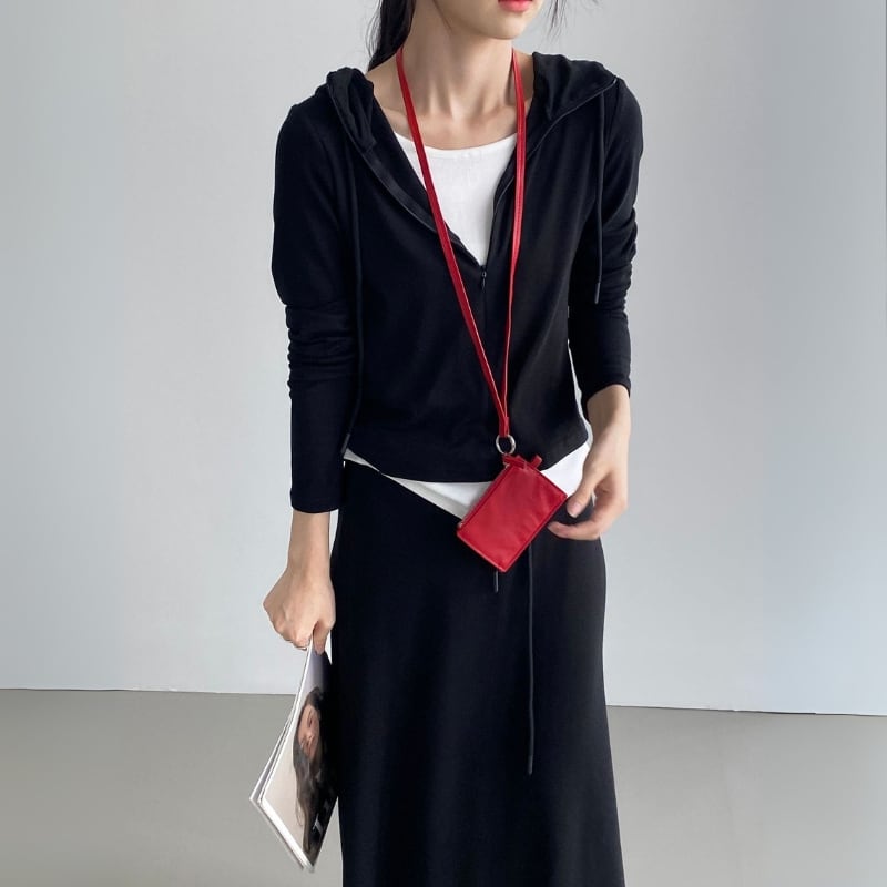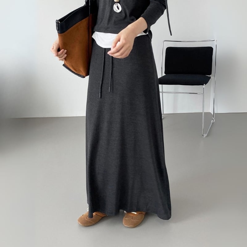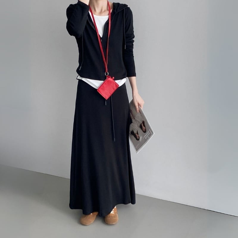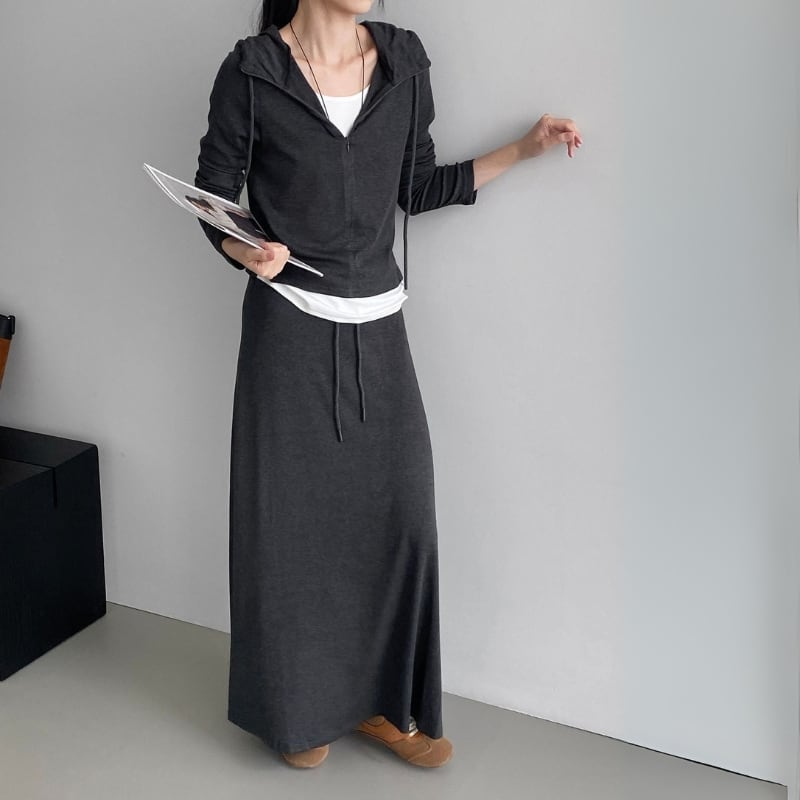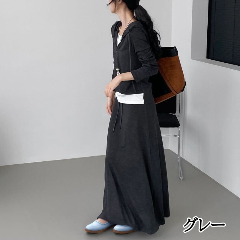 フード付きフルジップトップス&ドレープスカートセットアップ ◆2color 204415