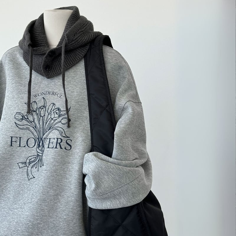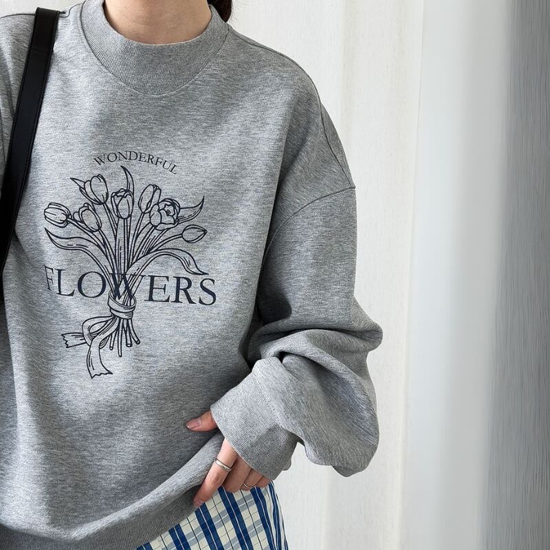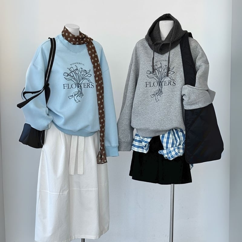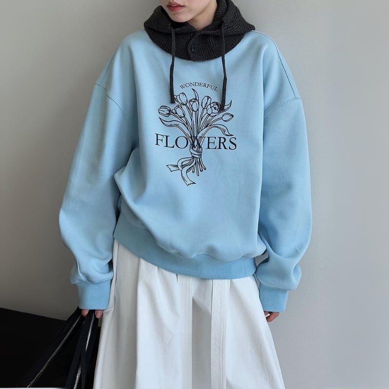 フラワープリント クルーネック 長袖スウェットシャツ ◆3color 204416