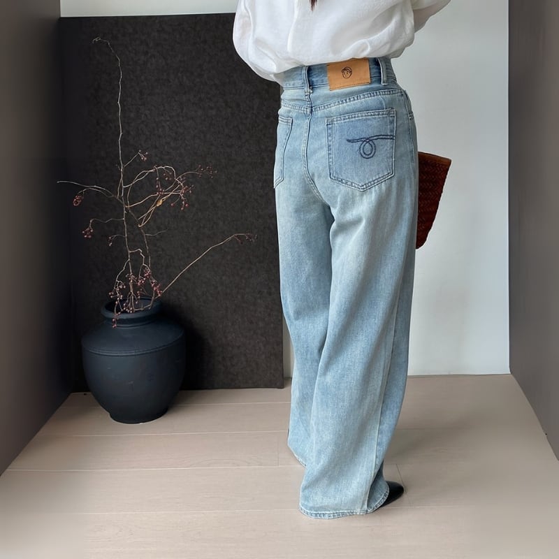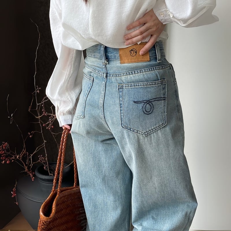 バックポケットのさりげない刺繍が、シンプルながらも個性を演出します。