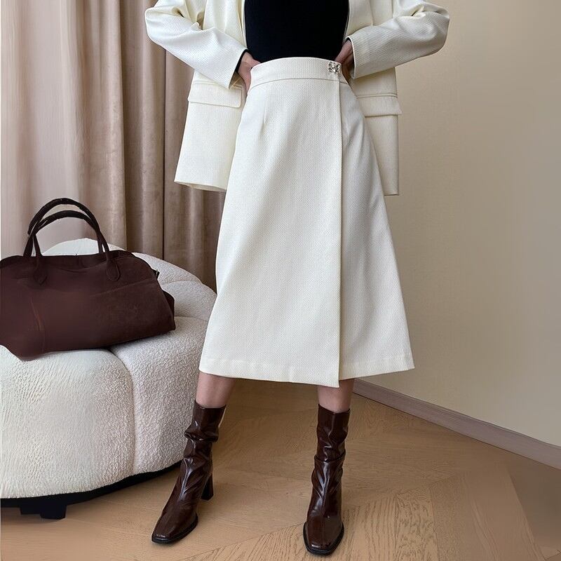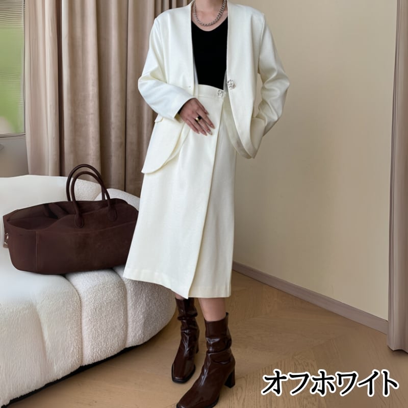 ノーカラージャケットとラップ風Aラインスカート ◆3color 204436