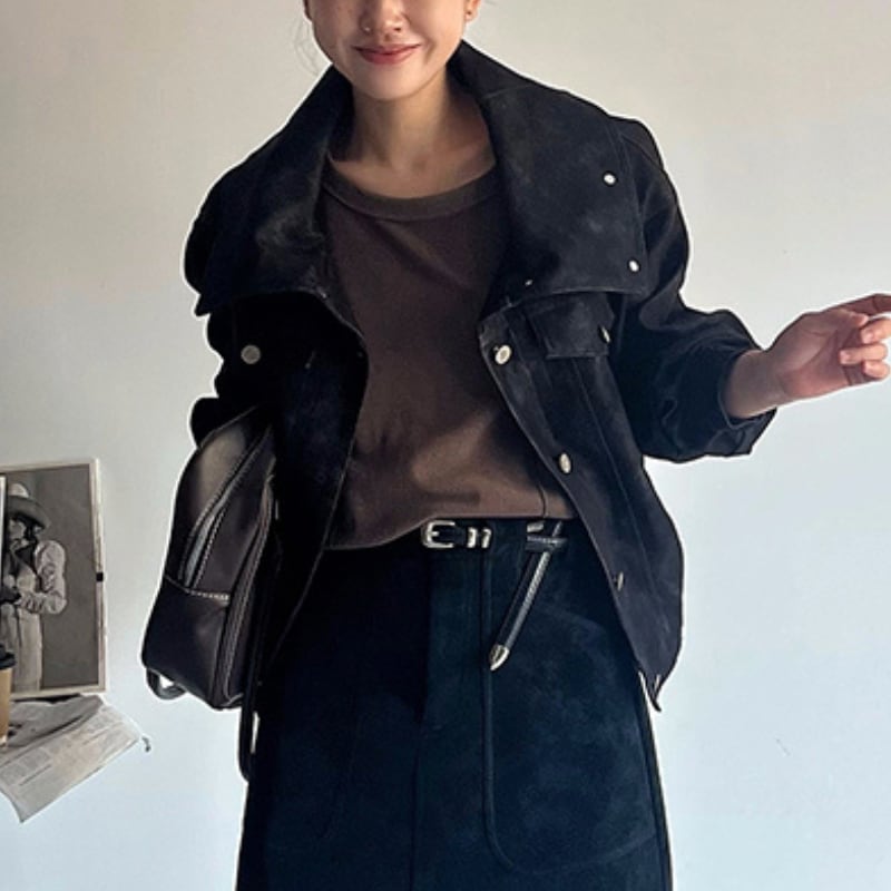 スタンドカラー ボタンフロント スエードジャケット ◆2color 204444