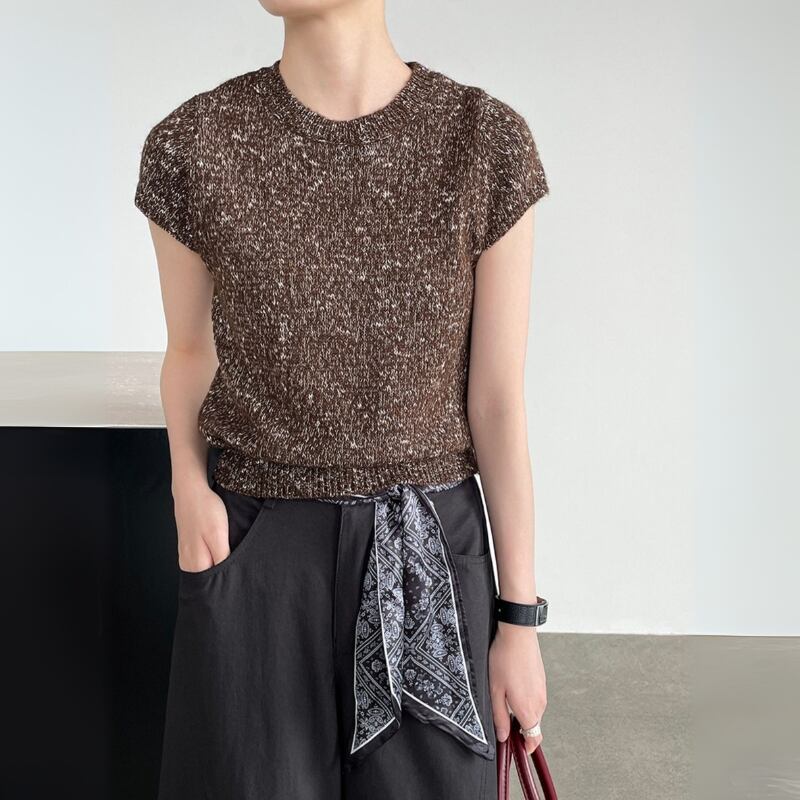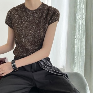 クルーネック 半袖 ニット トップス ◆3color 204453