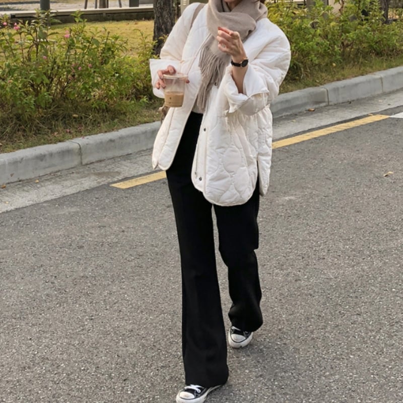 ノーカラーなのでハイネックのインナーとの相性も抜群です!