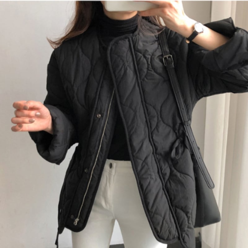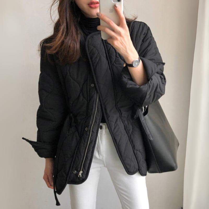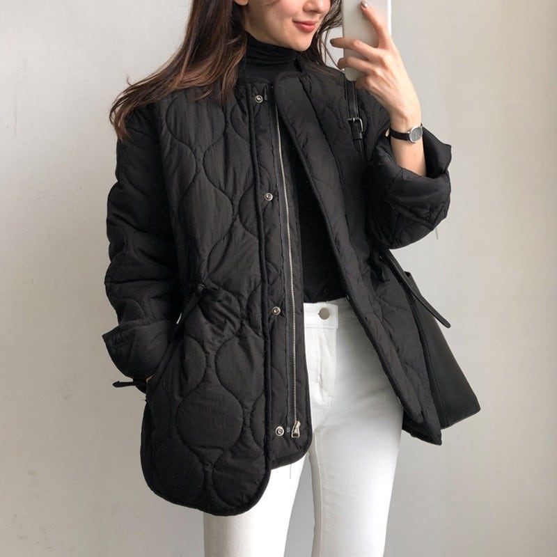 キルティング ジップアップ ミドル丈 長袖ジャケット ◆2color 204455