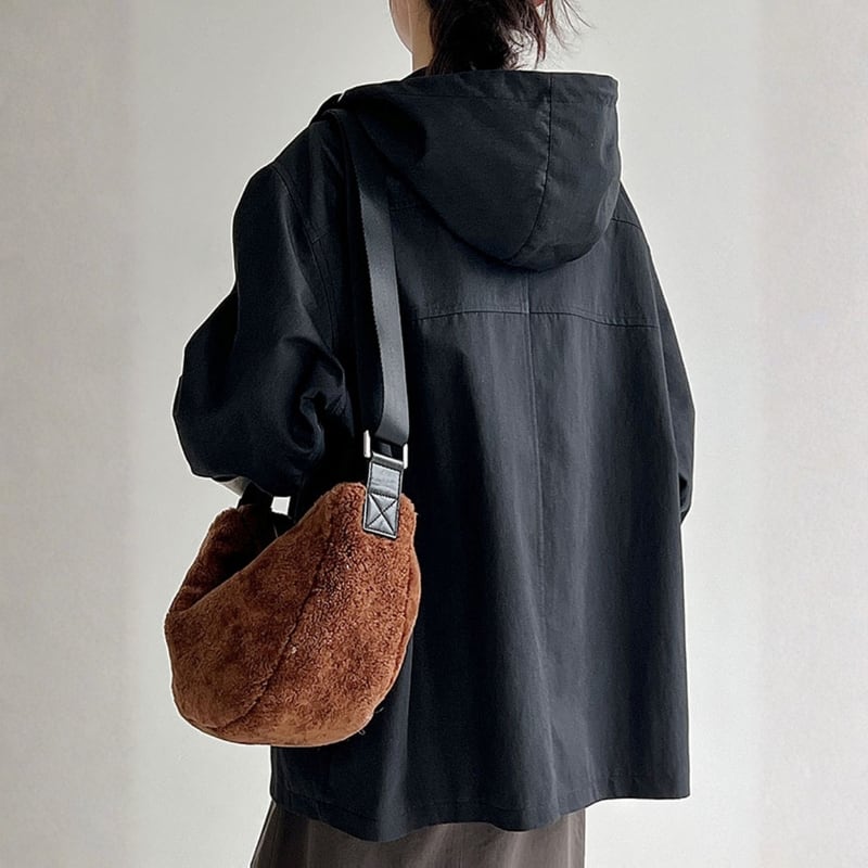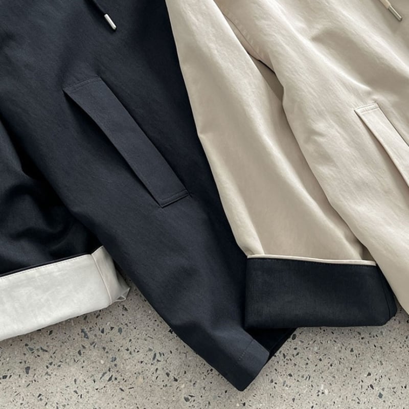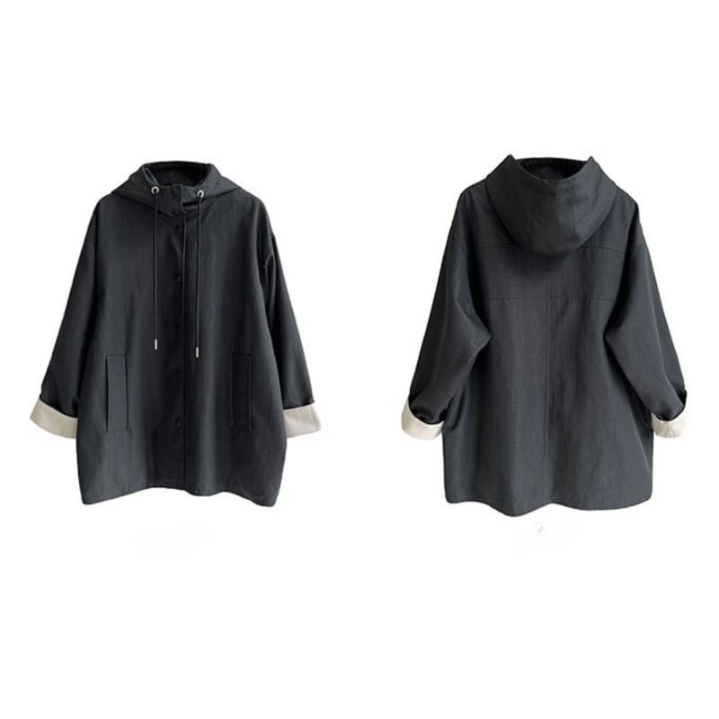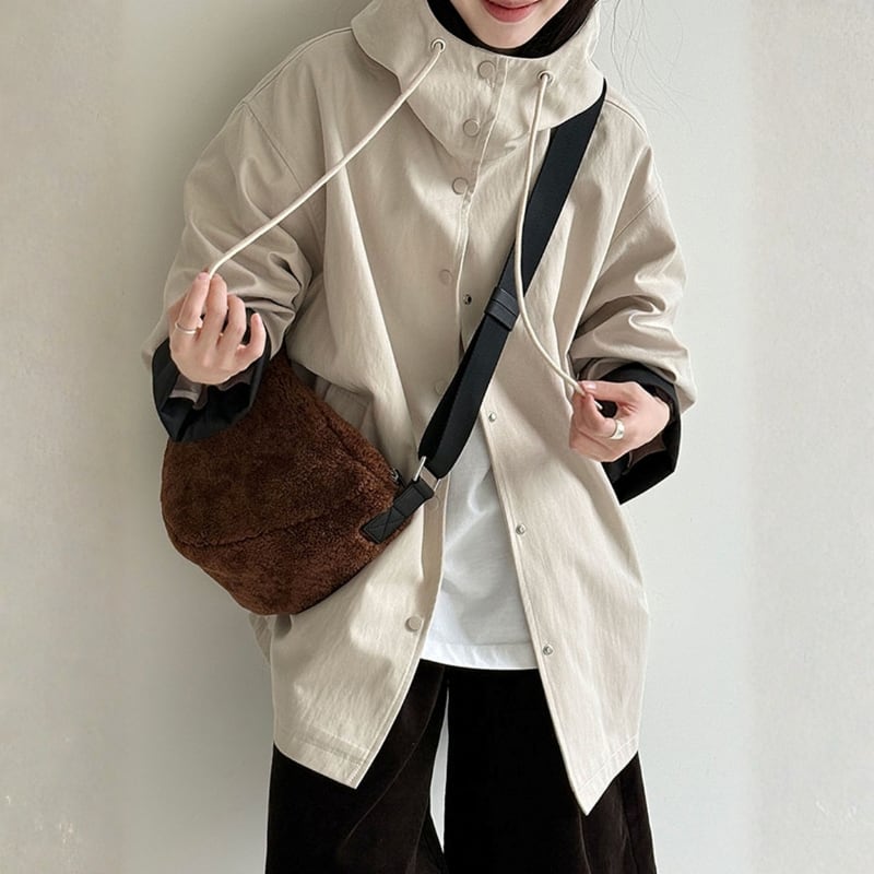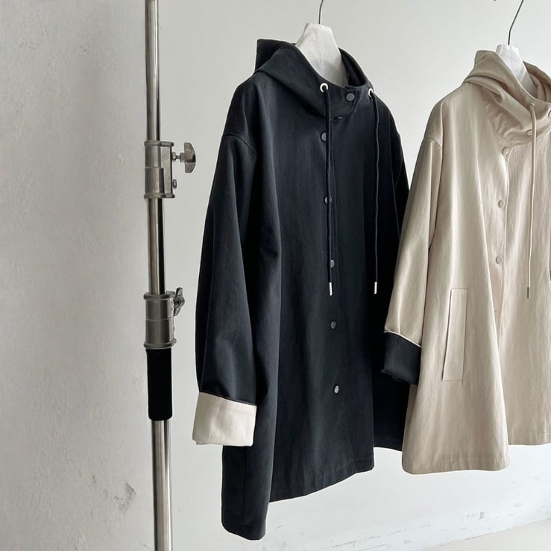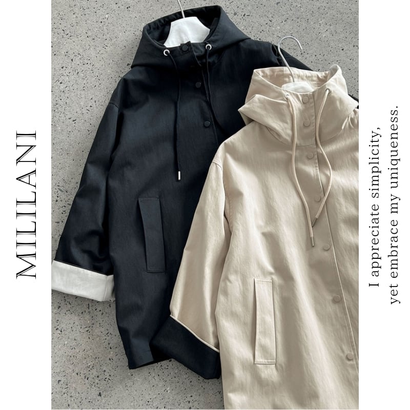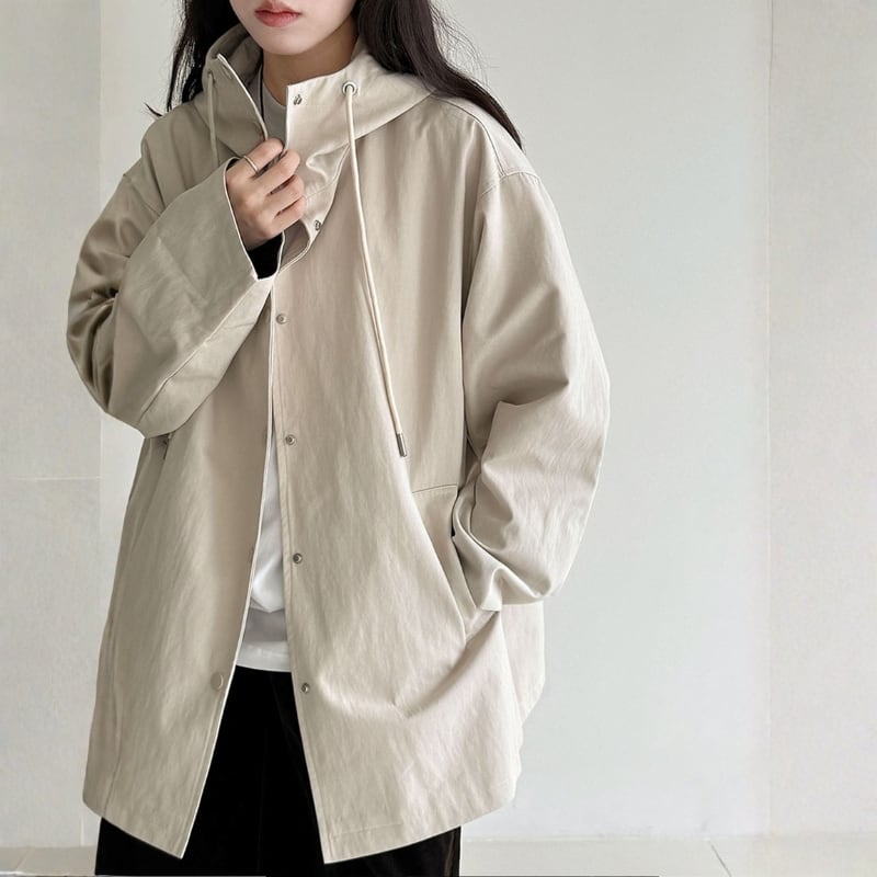 デイリーユースに最適なフード付きミドル丈コート。