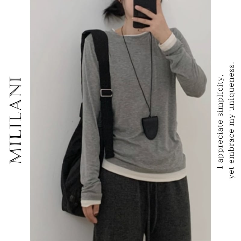 クルーネック レイヤード風 長袖 カットソー ◆3color 204483
