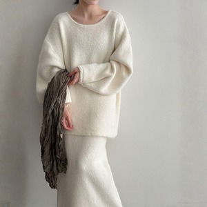 バックボタンニットセーター&ミディ丈スカート セットアップ ◆2color 204469