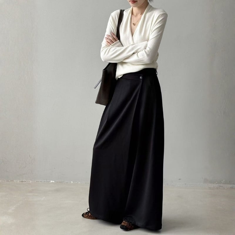フラットシューズやヒールとの相性が良く、普段使いはもちろん、少しフォーマルなシーンにもおすすめです。