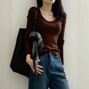 Uネック スリムフィット 長袖カットソー ◆6color 204478