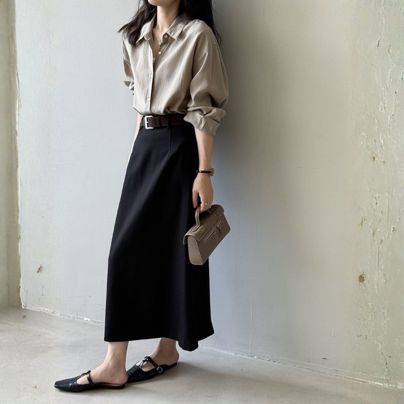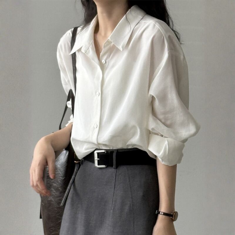 ルーズなシルエットがこなれ感を演出する長袖シャツ。
