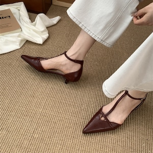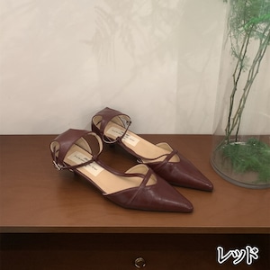 ストラップ ポインテッドトゥ ローヒール パンプス ◆4color 204486