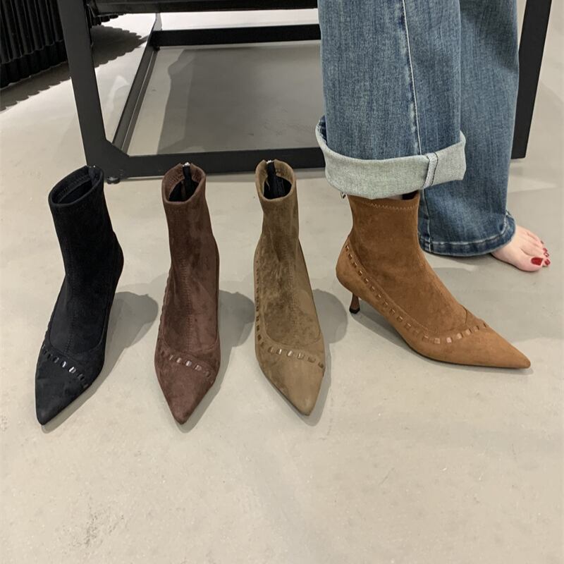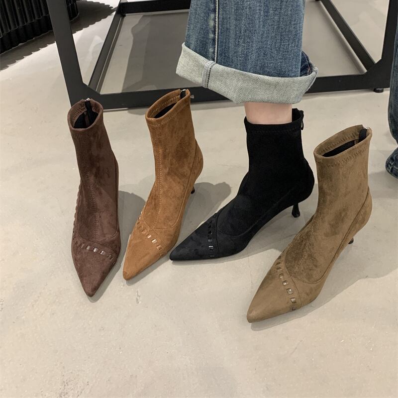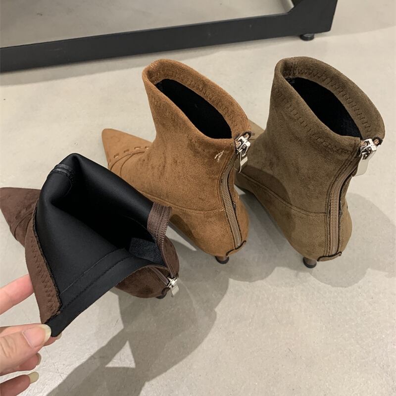 ポインテッドトゥ バックジッパー ショートブーツ ◆4color 204490