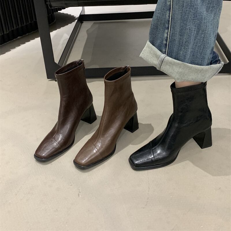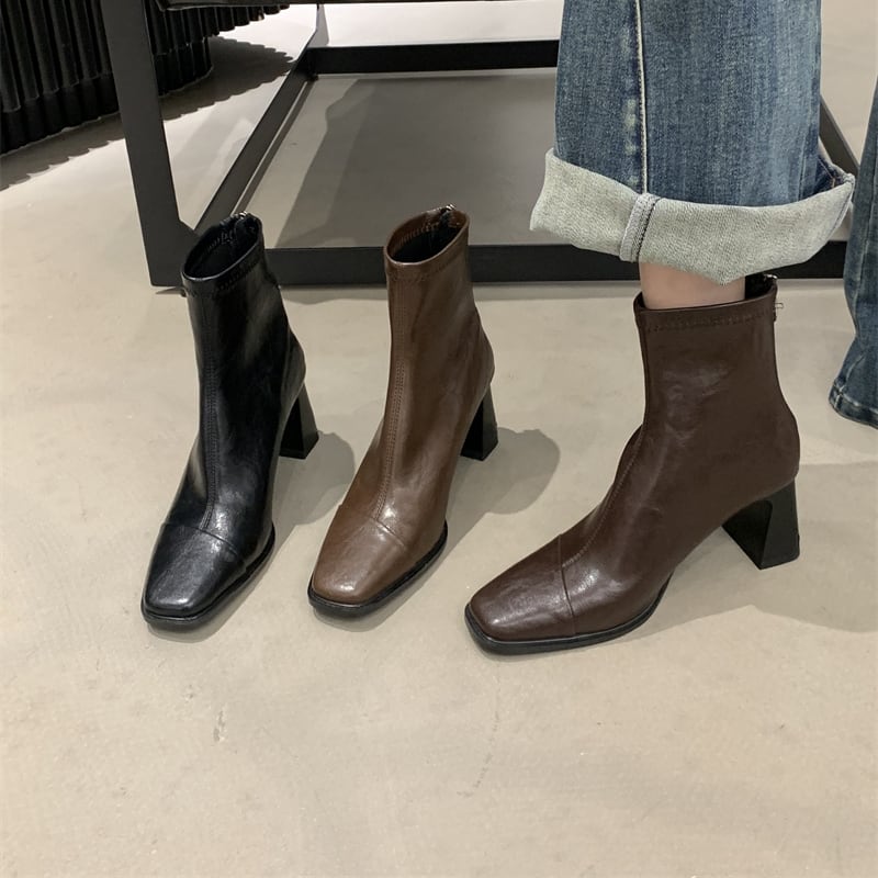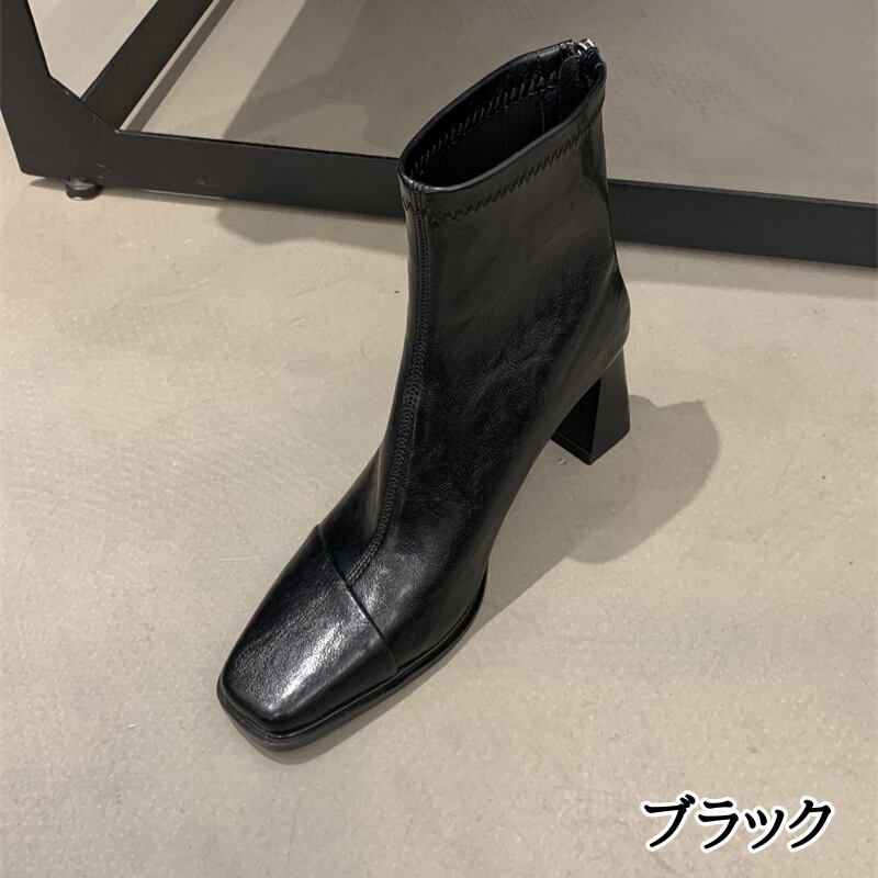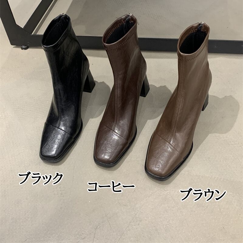 スクエアトゥ チャンキーヒール ショートブーツ ◆3color 204492