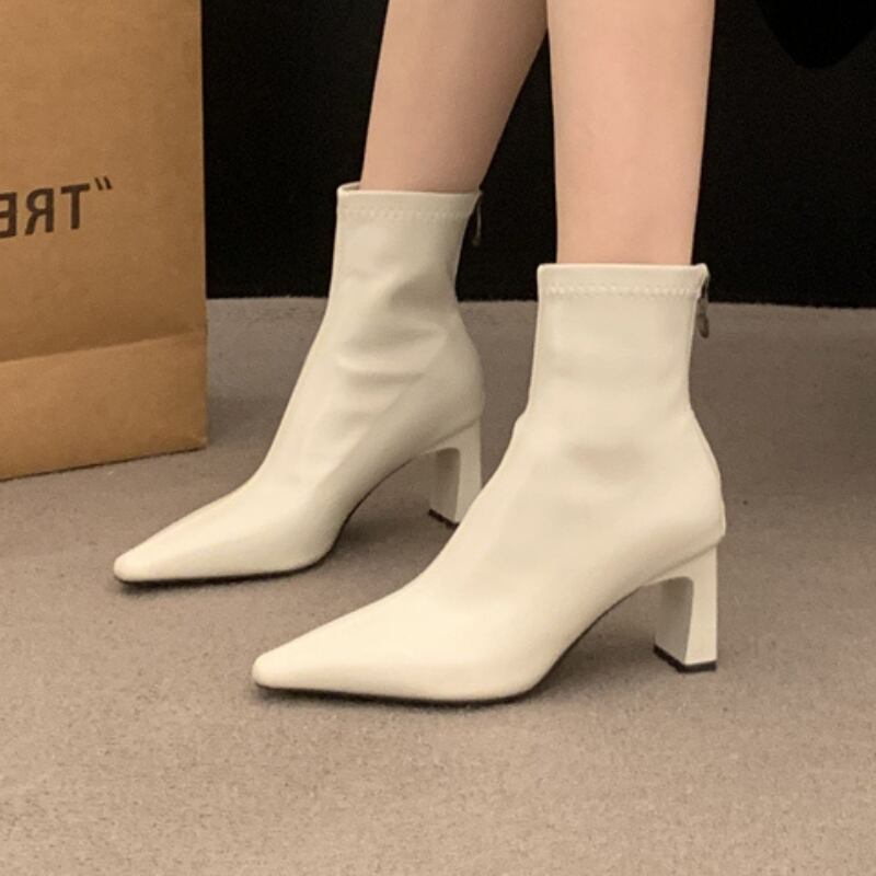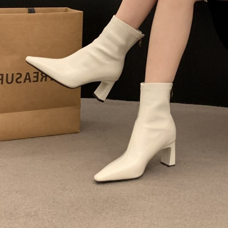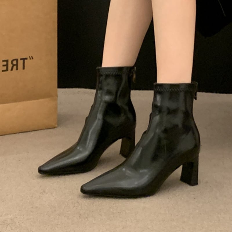 ポインテッドトゥ チャンキーヒール ショートブーツ ◆3color 204494