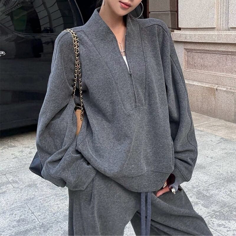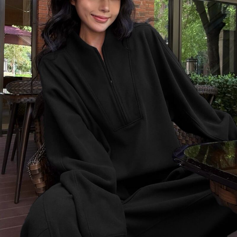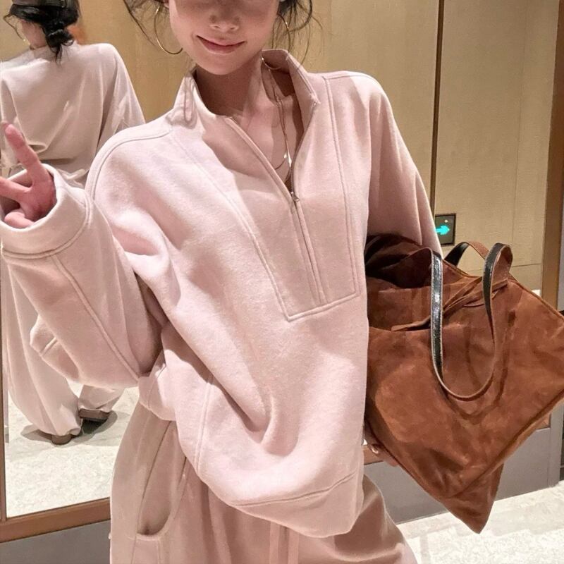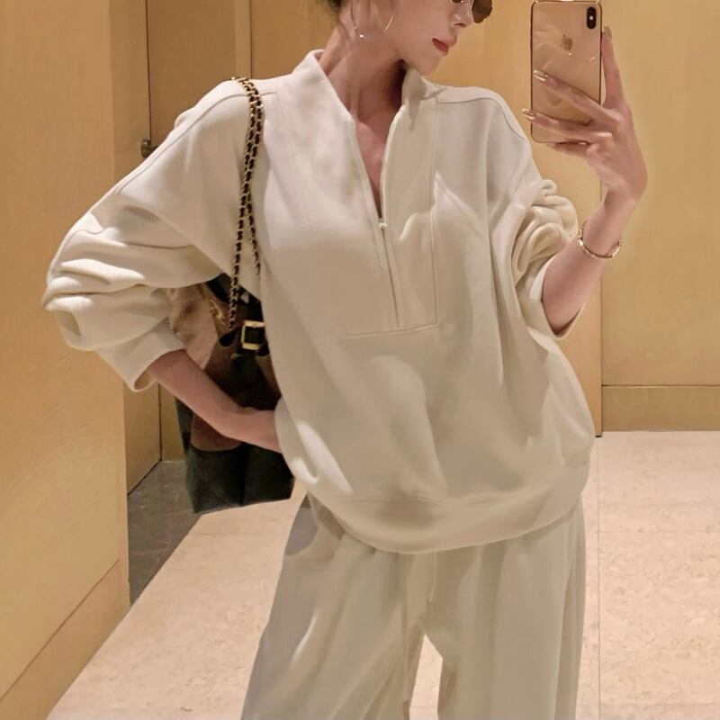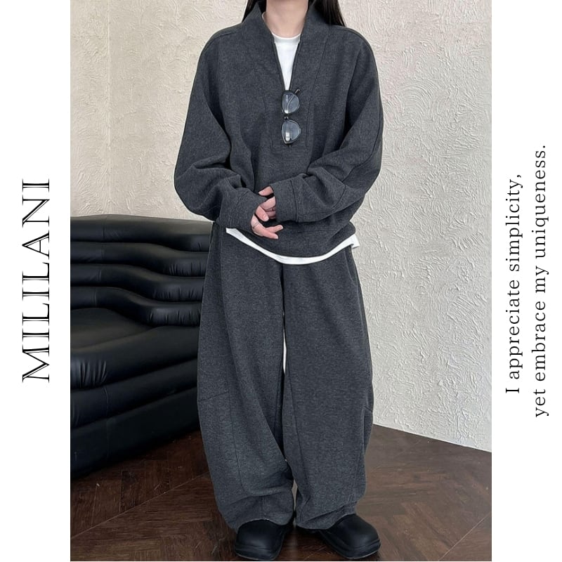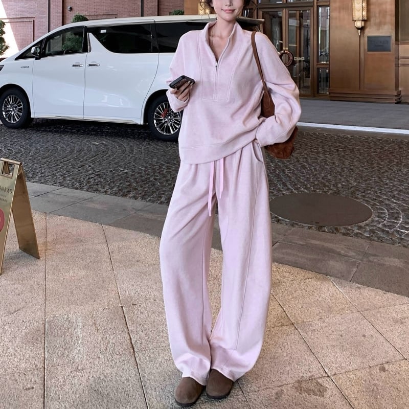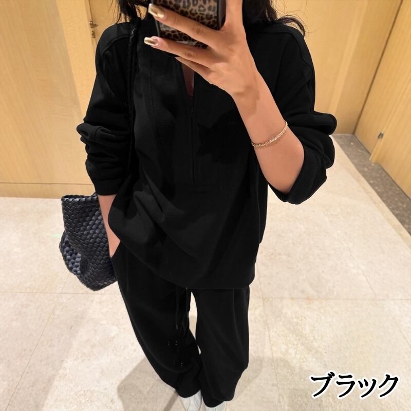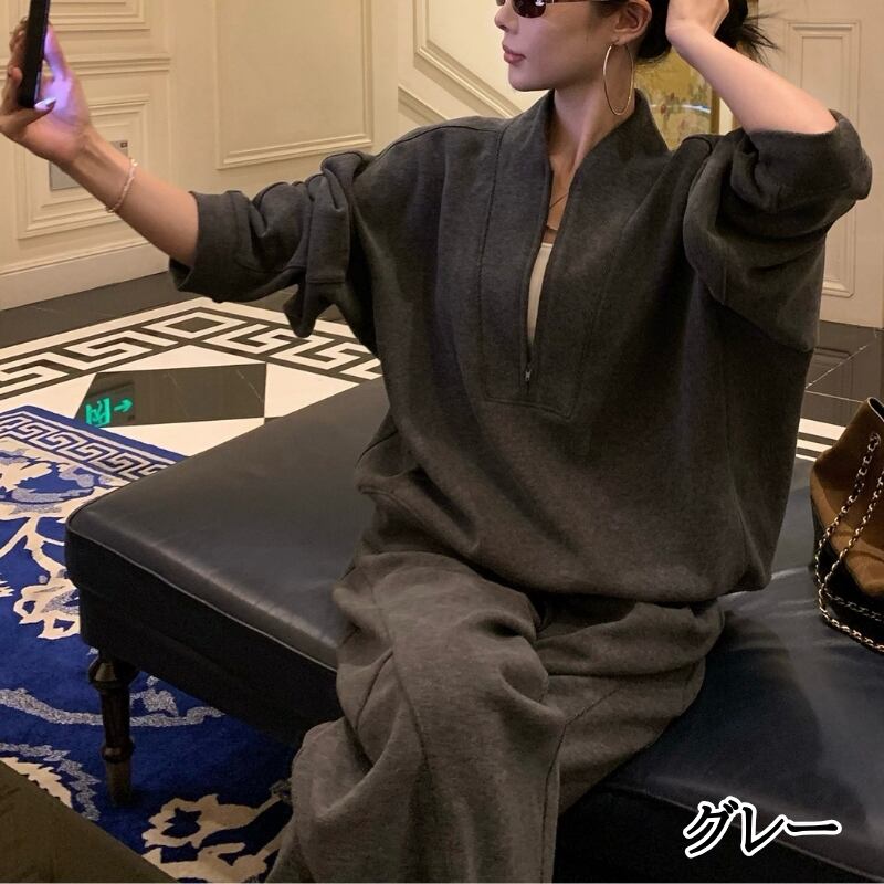 ハーフジップ ベルベットプルオーバー&ワイドレッグパンツ ツーピース ◆4color 204495