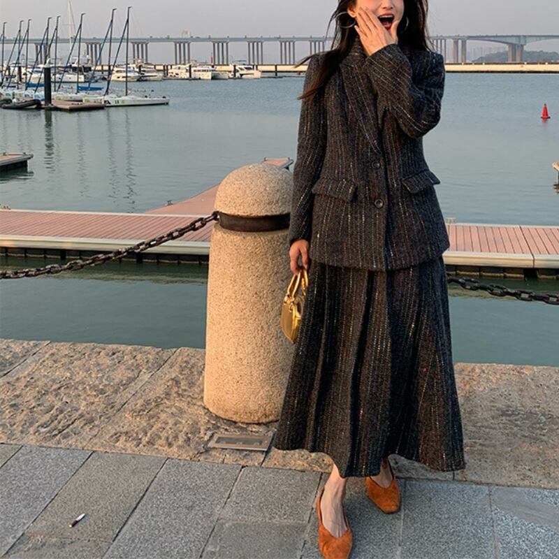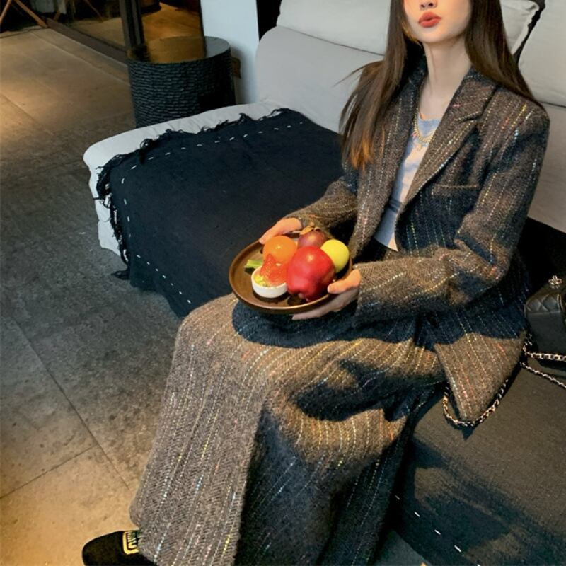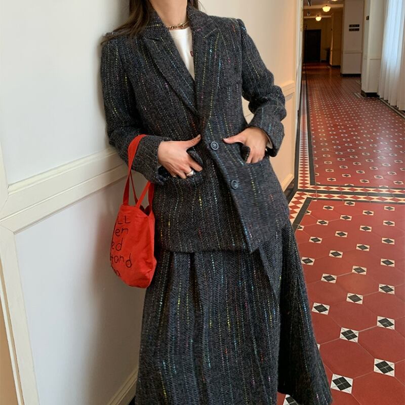 温かみのあるジャカードのセットアップ。