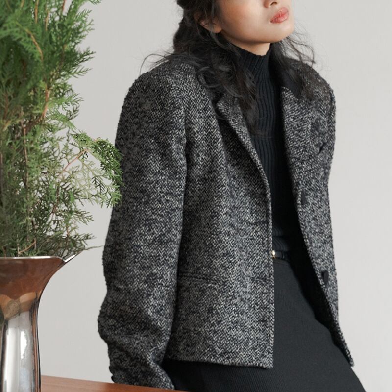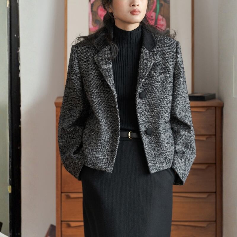 ジャケットは程よい丈感で、スカートとのバランスが絶妙です。