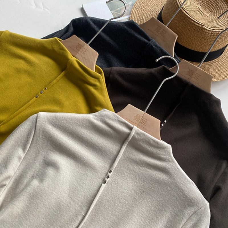 モックネックとボタンデザインが上品な印象を与え、普段使いからちょっとしたお出かけにもお勧!