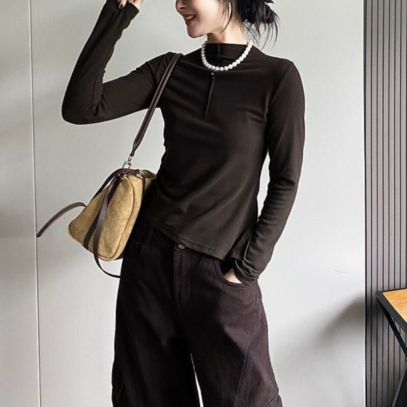 モックネック スリムフィット 長袖カットソー ◆4color 204503