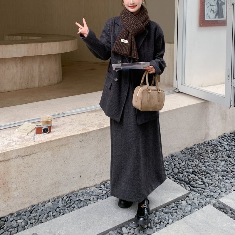 ダブルブレストジャケット ロングスカート セットアップ 204507
