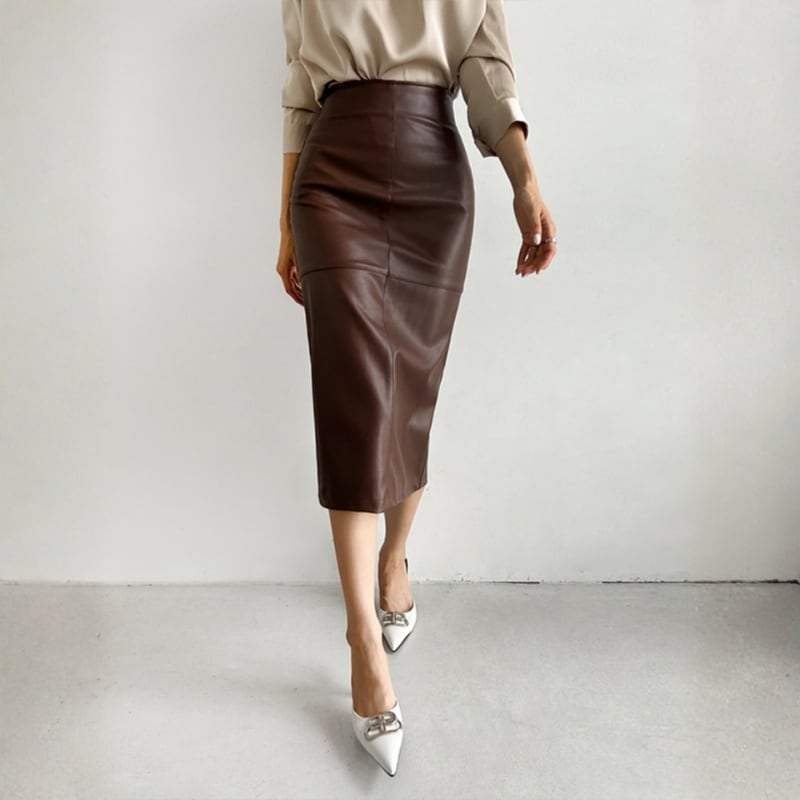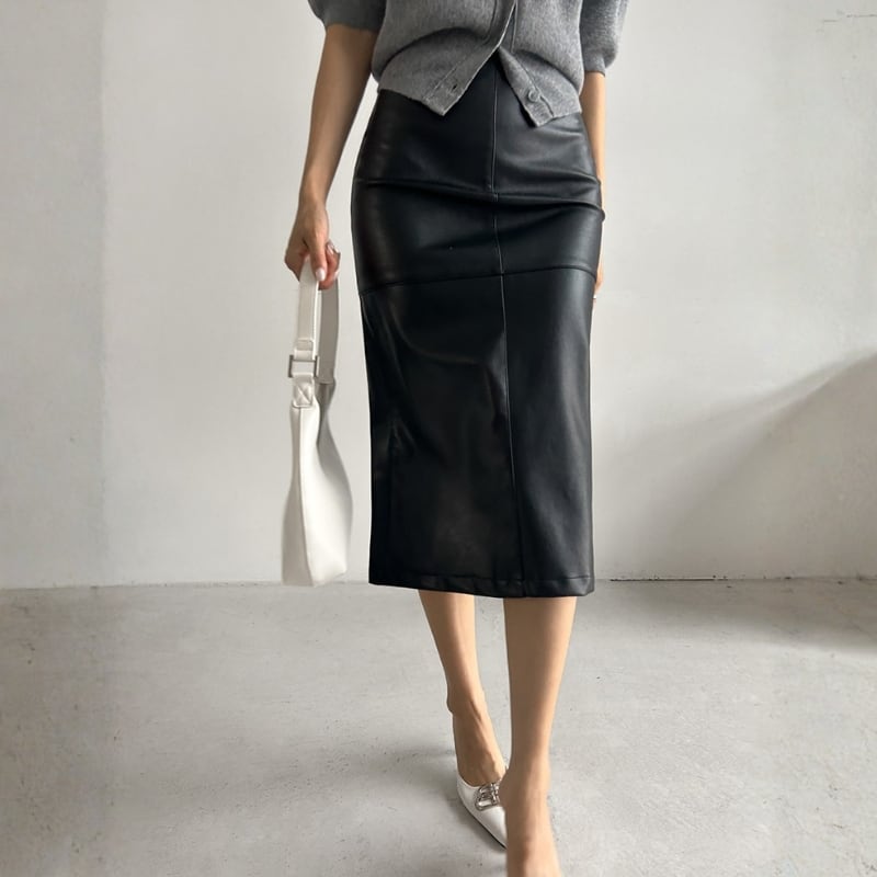 フェイクレザー バックスリット タイトスカート ◆4color 204511
