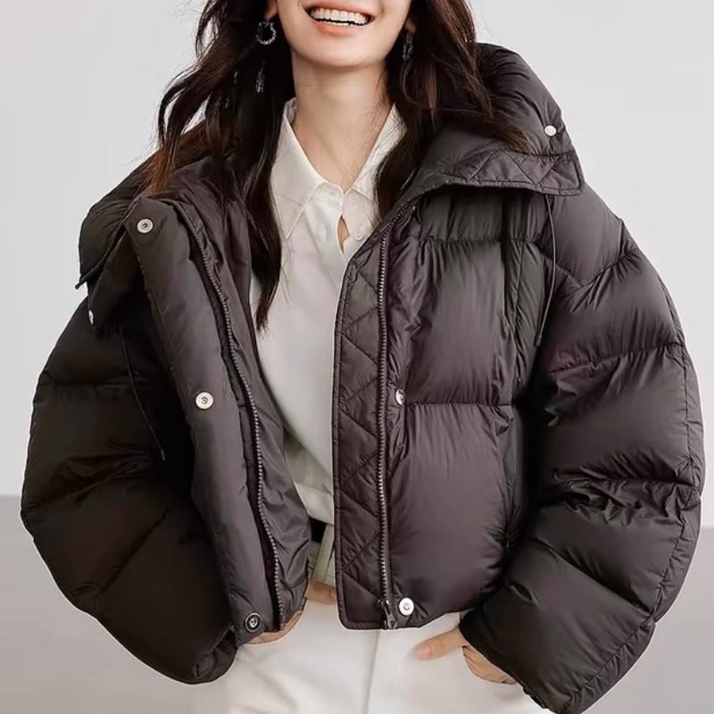 ドロップショルダー ボリュームフード ショート ダウンジャケット ◆2color 204520