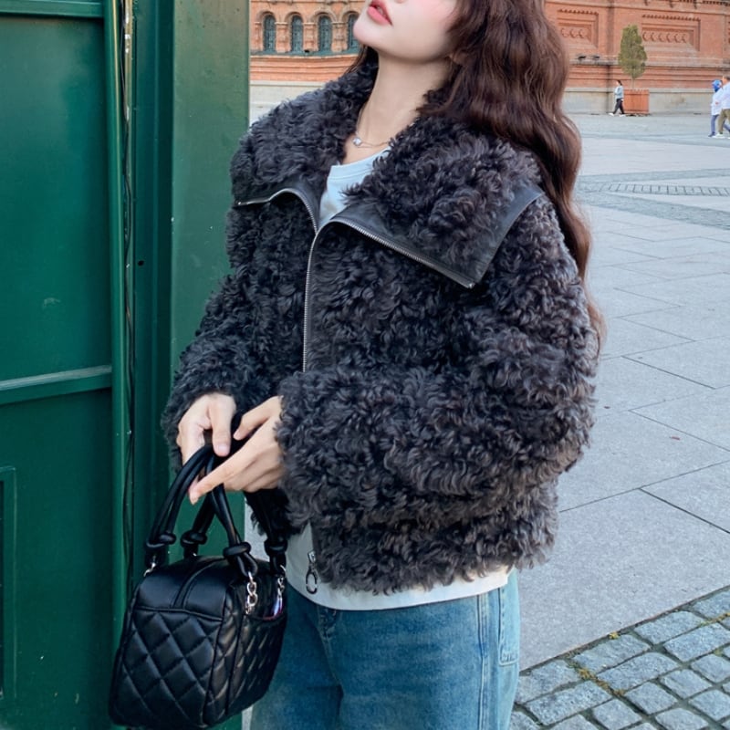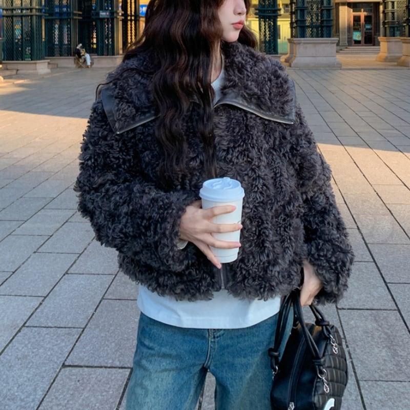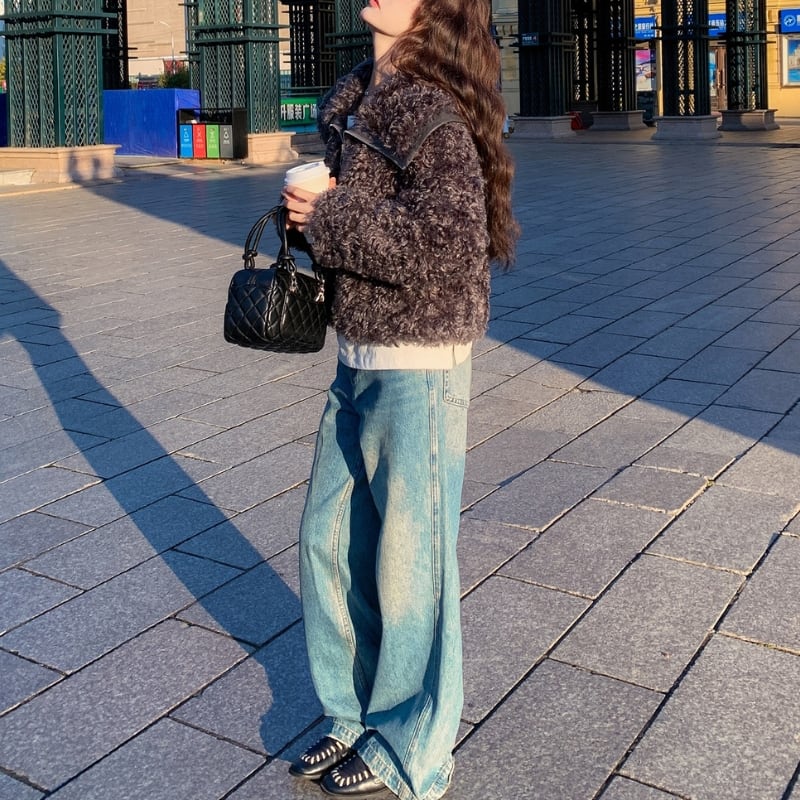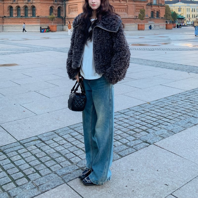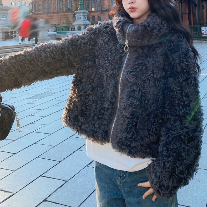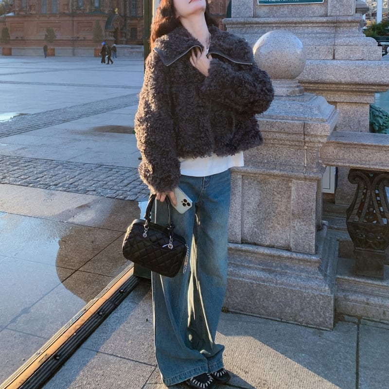 短めの丈がスタイルアップ効果を発揮するボアコート。