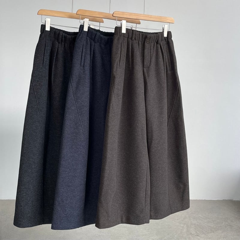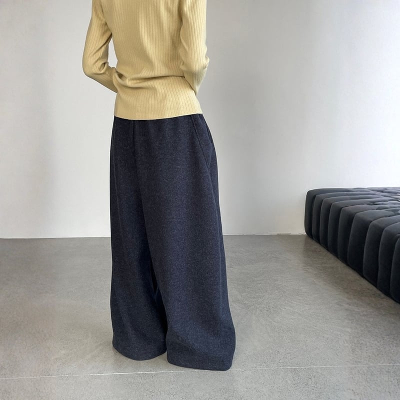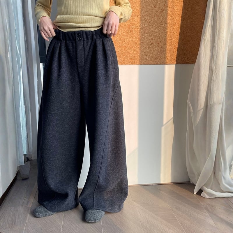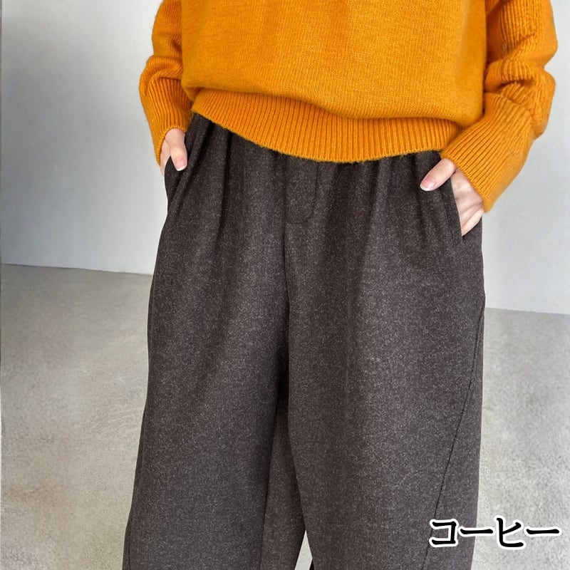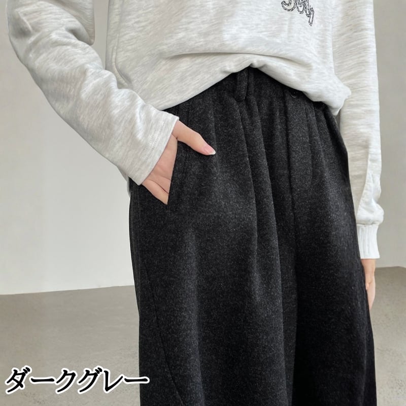 フリース裏地 ウエストゴム ワイドレッグパンツ ◆3color 204529