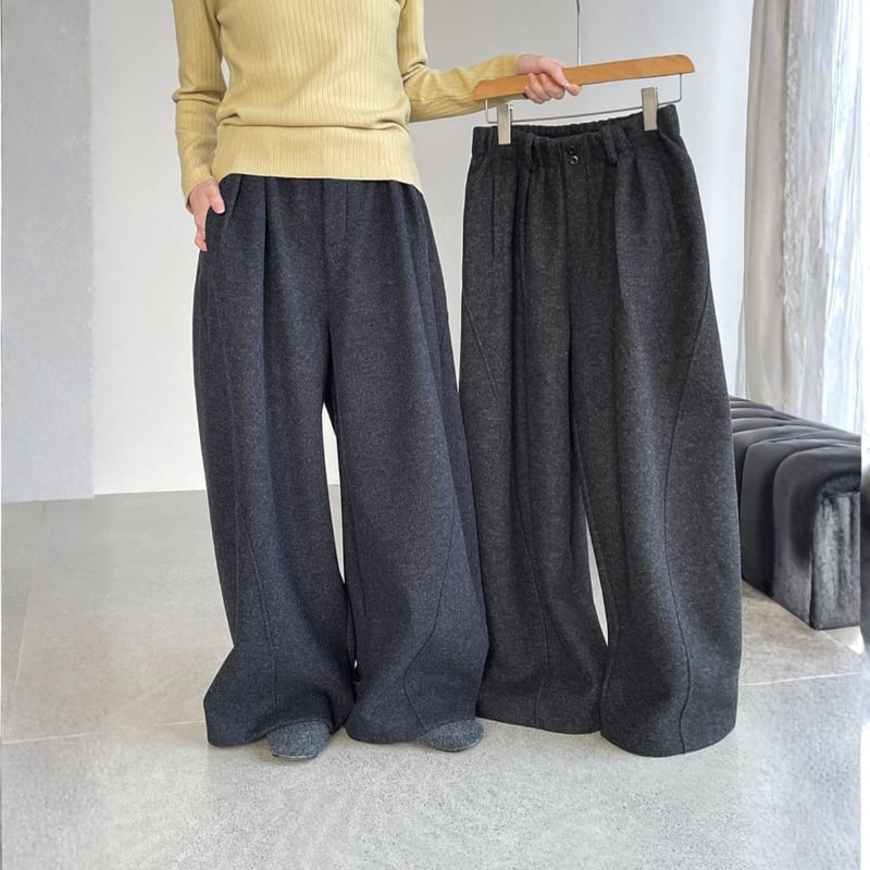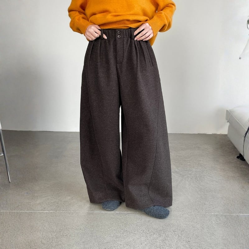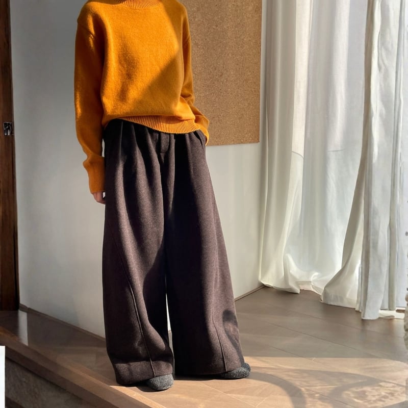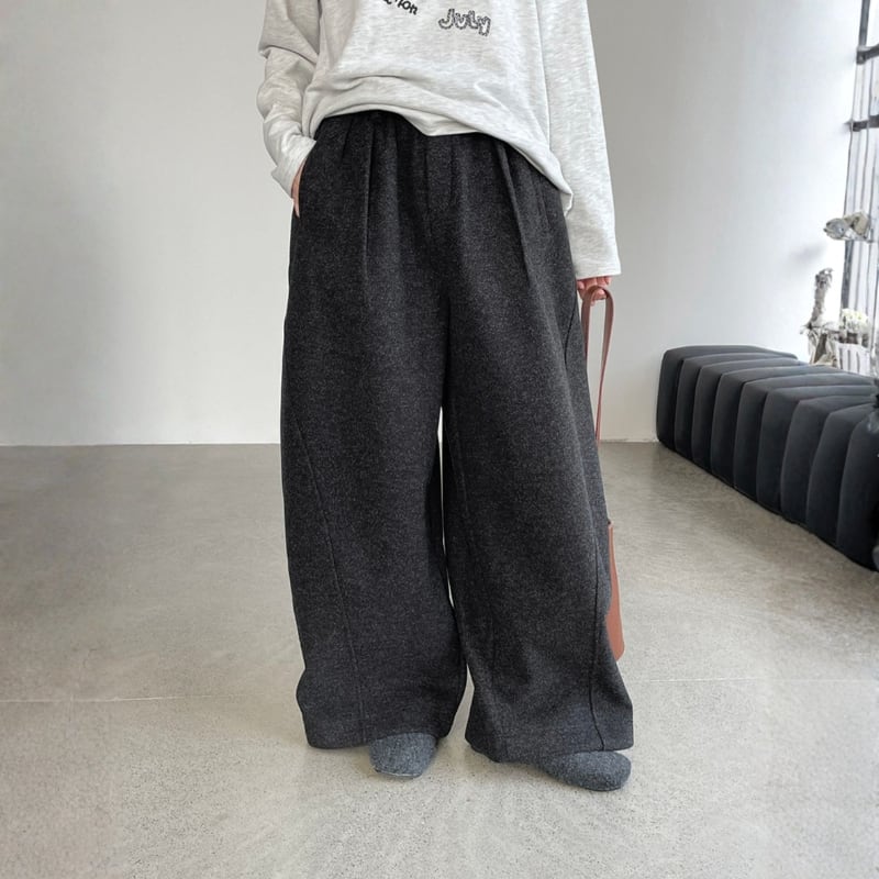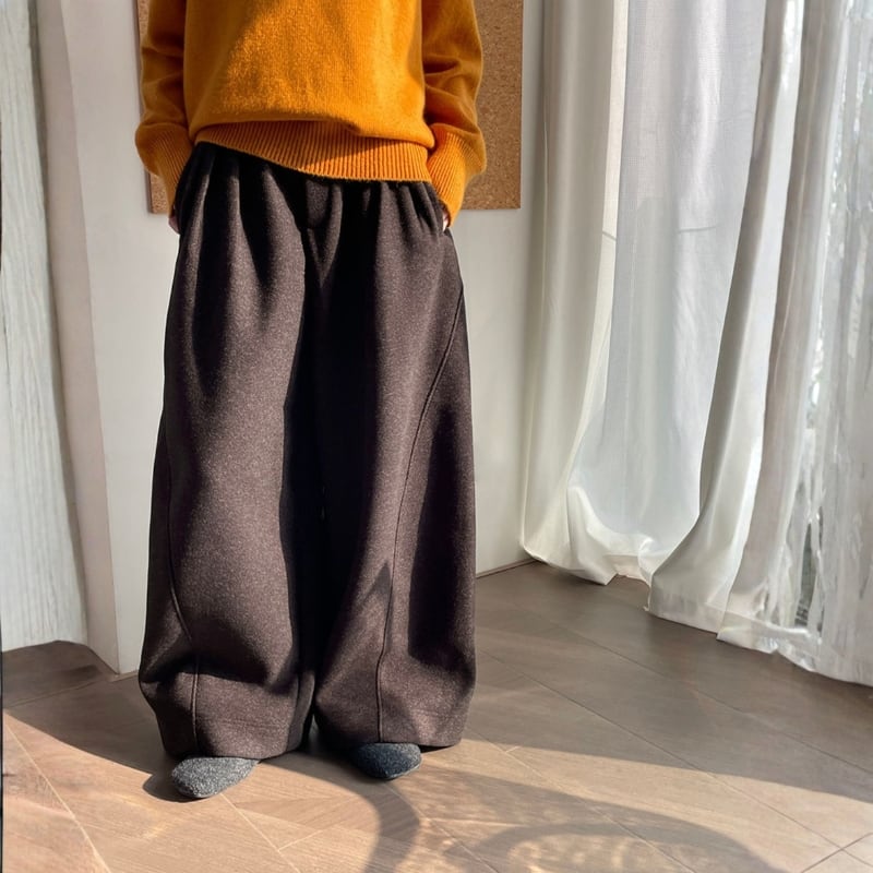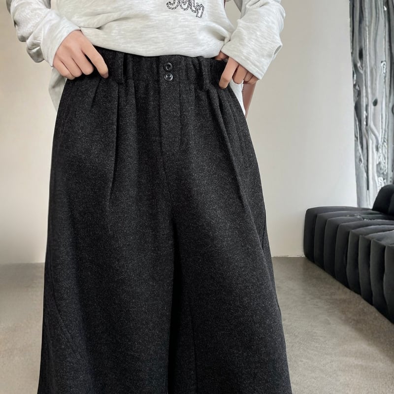 フリース裏地 ウエストゴム ワイドレッグパンツ ◆3color 204529
