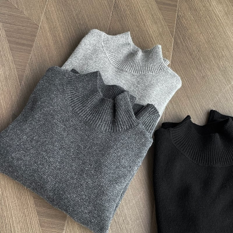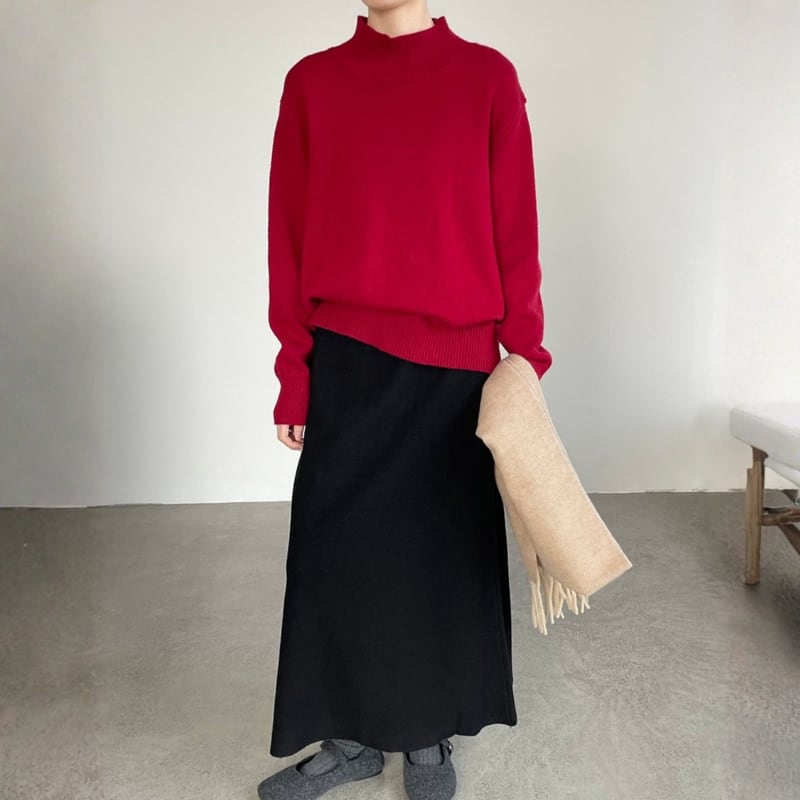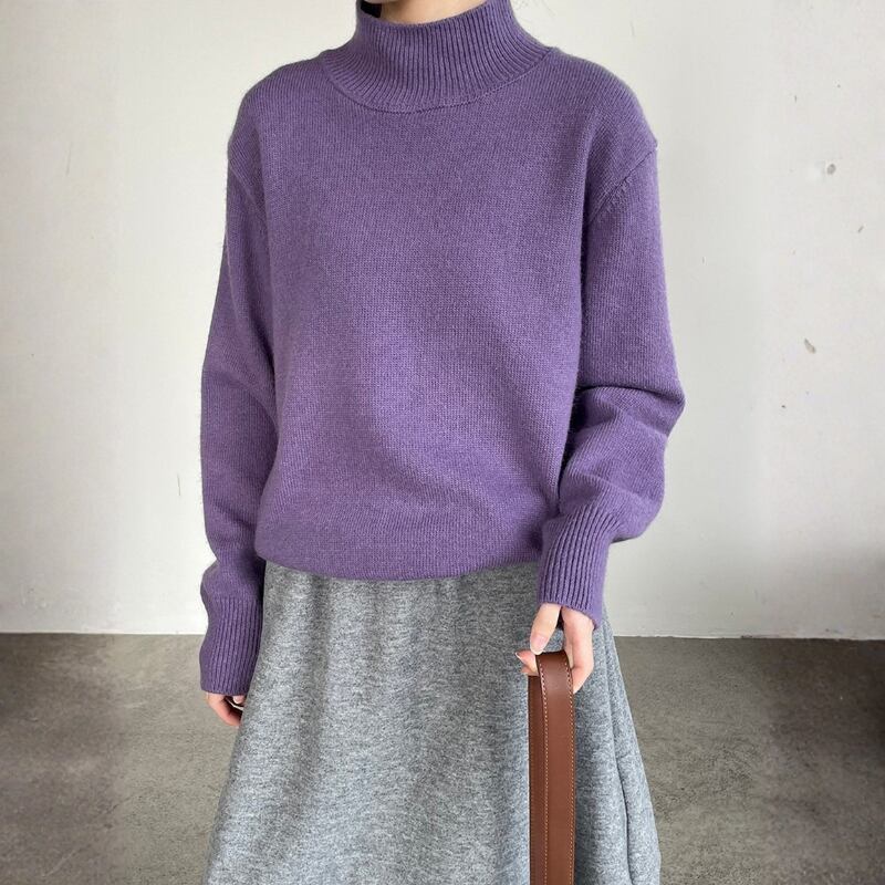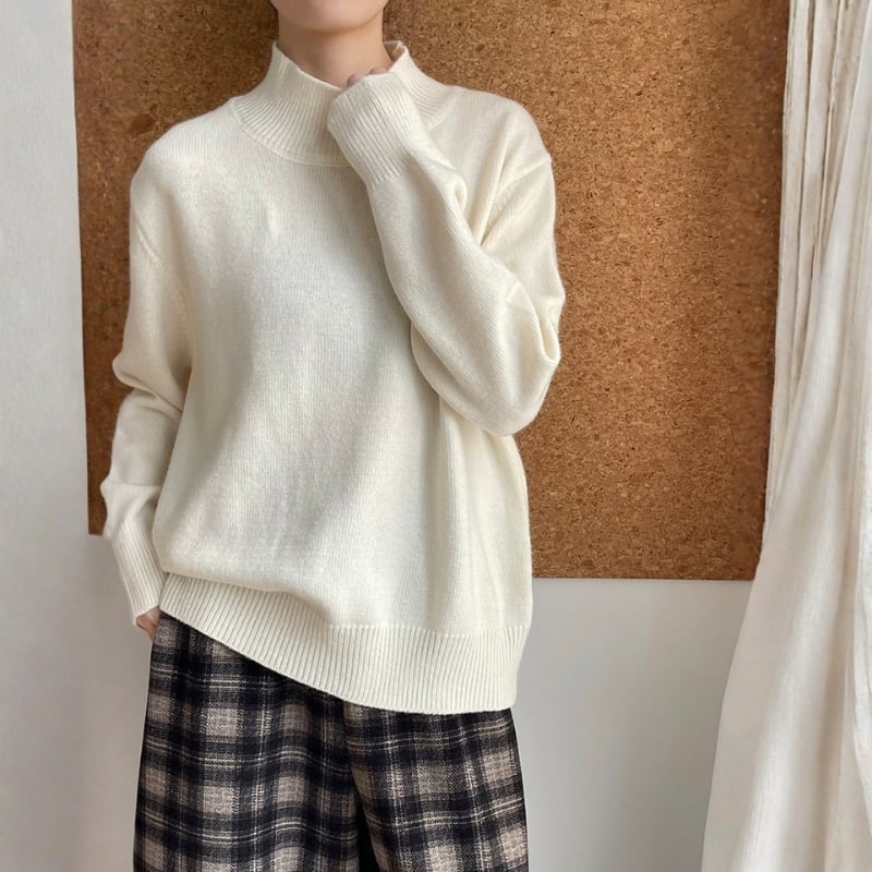 首元を優しく包み込むモックネックが上品で洗練されたニットプルオーバー。