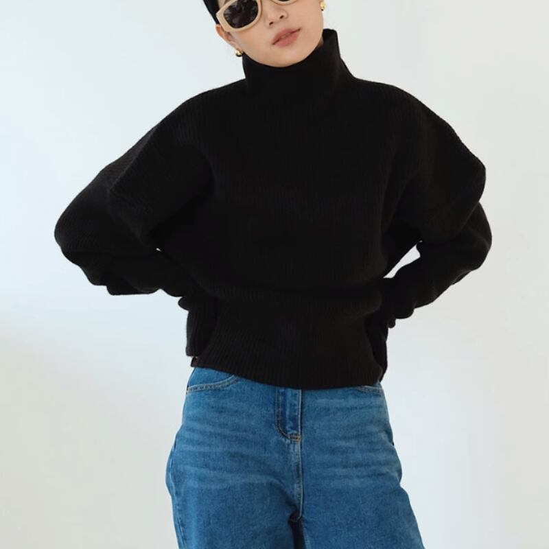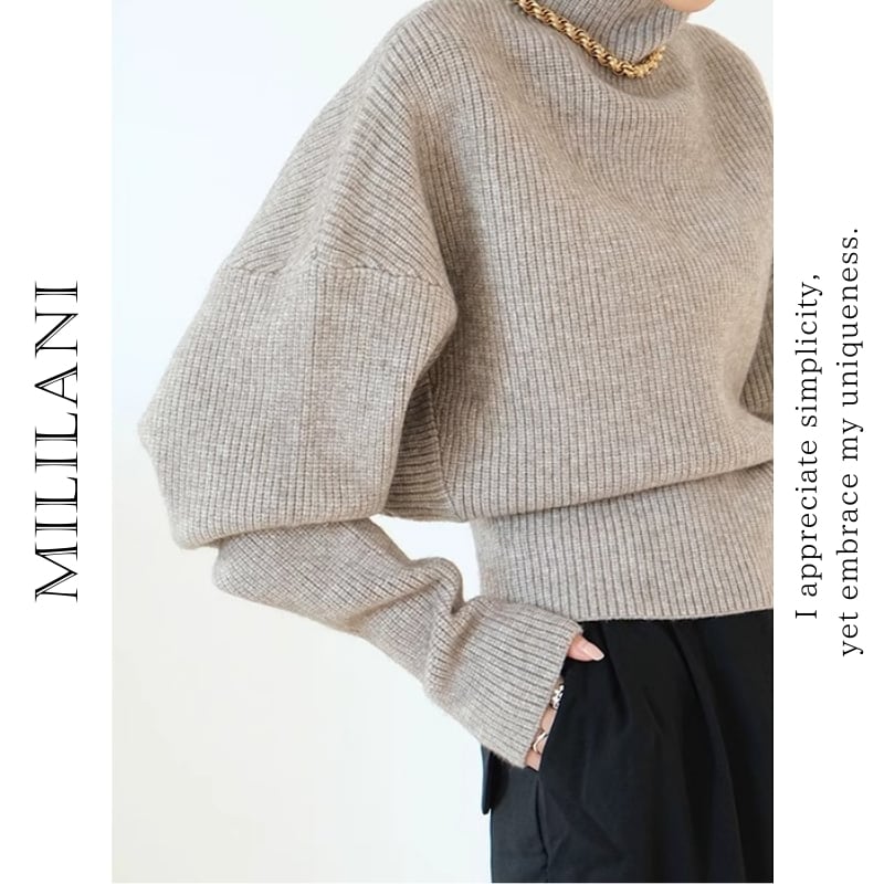 ボリューミーなバルーン袖が目を惹くオーバーサイズニット。