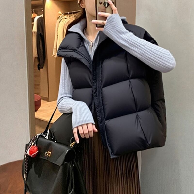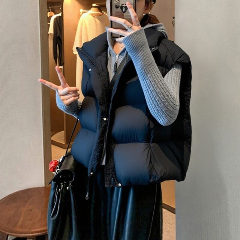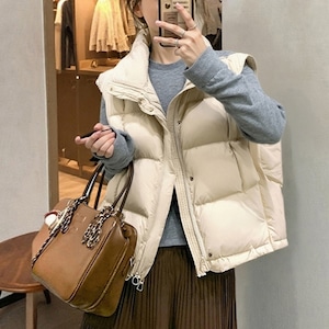 ノースリーブ フロントジッパー ショートダウンジャケット ◆3color 204548