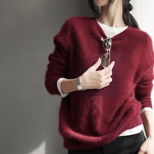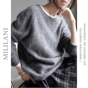 リラックス感のある着心地が魅力の長袖ニットプルオーバー。