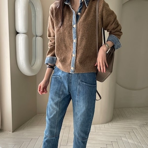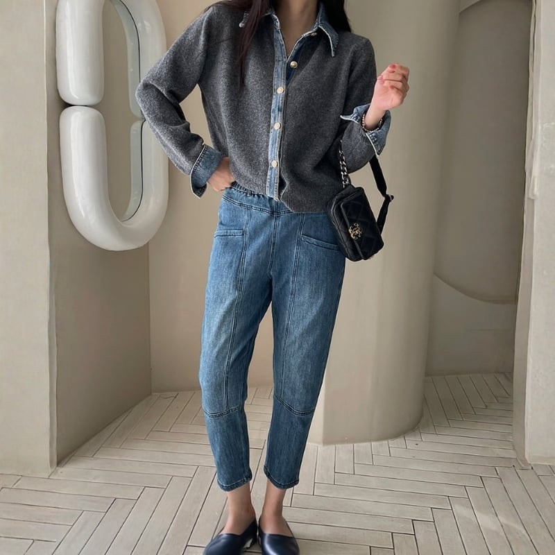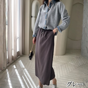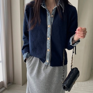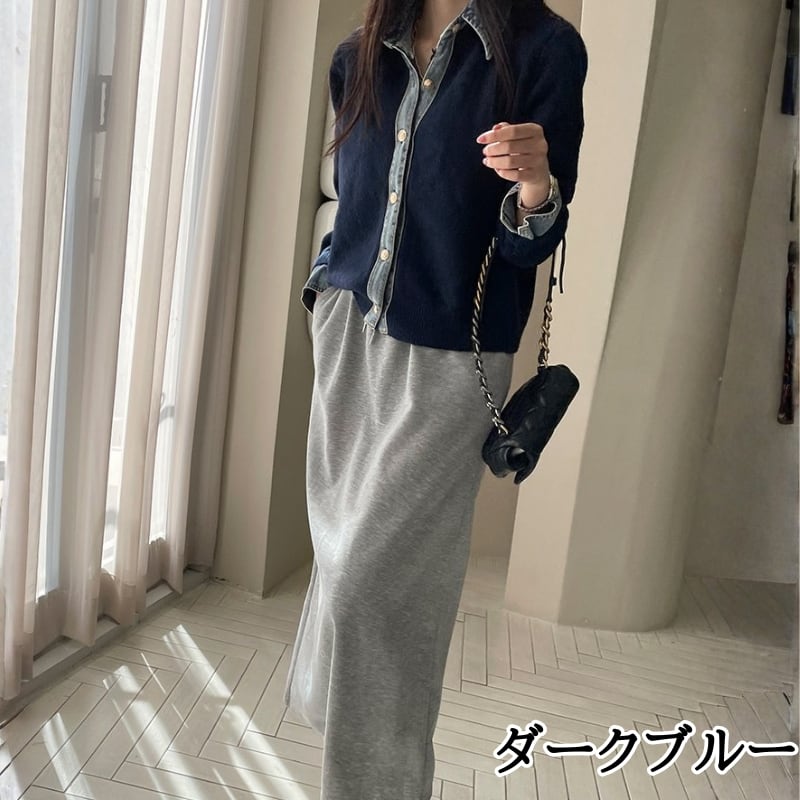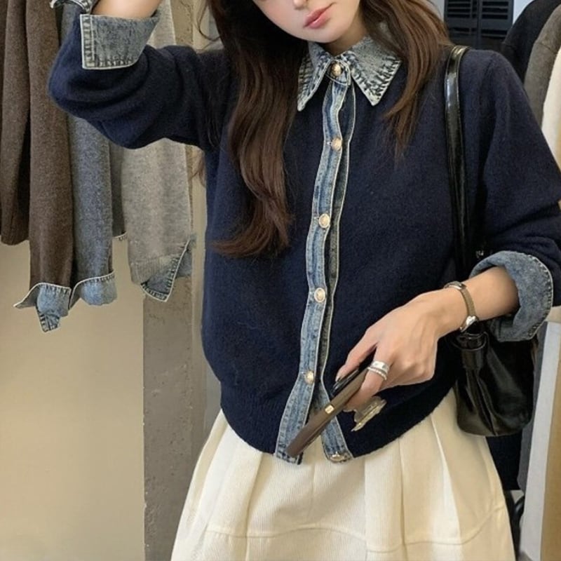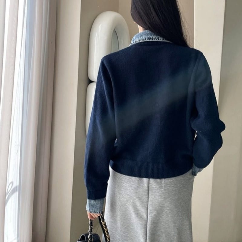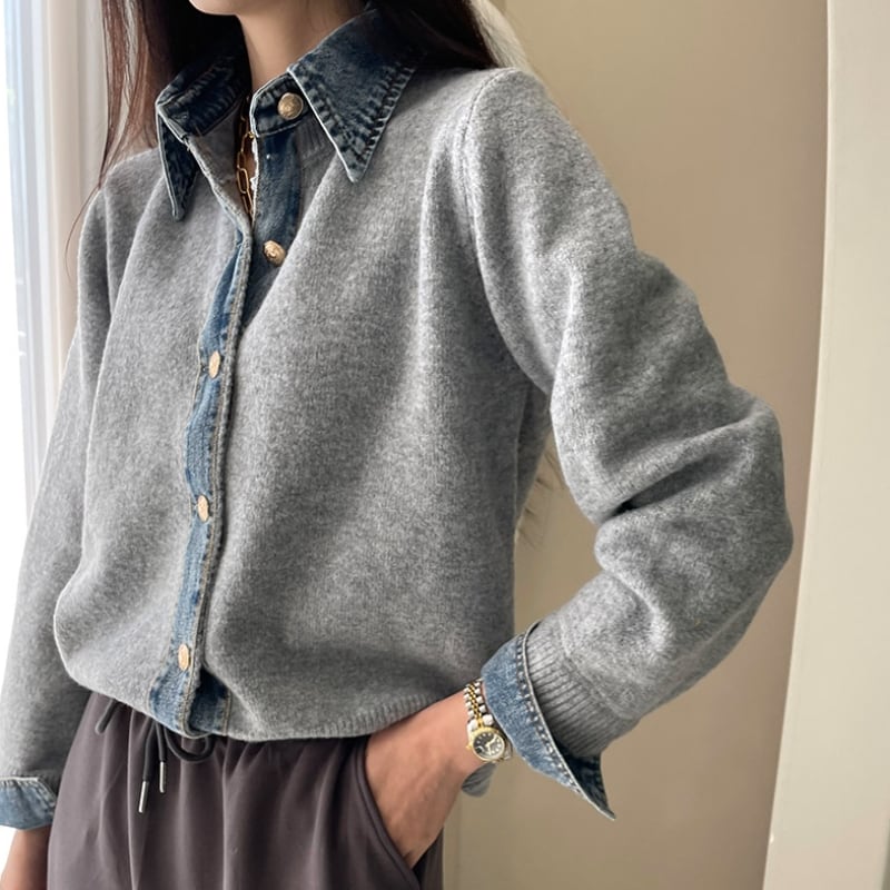 デニム切替 シャツカラー ニットカーディガン ◆4color 204568