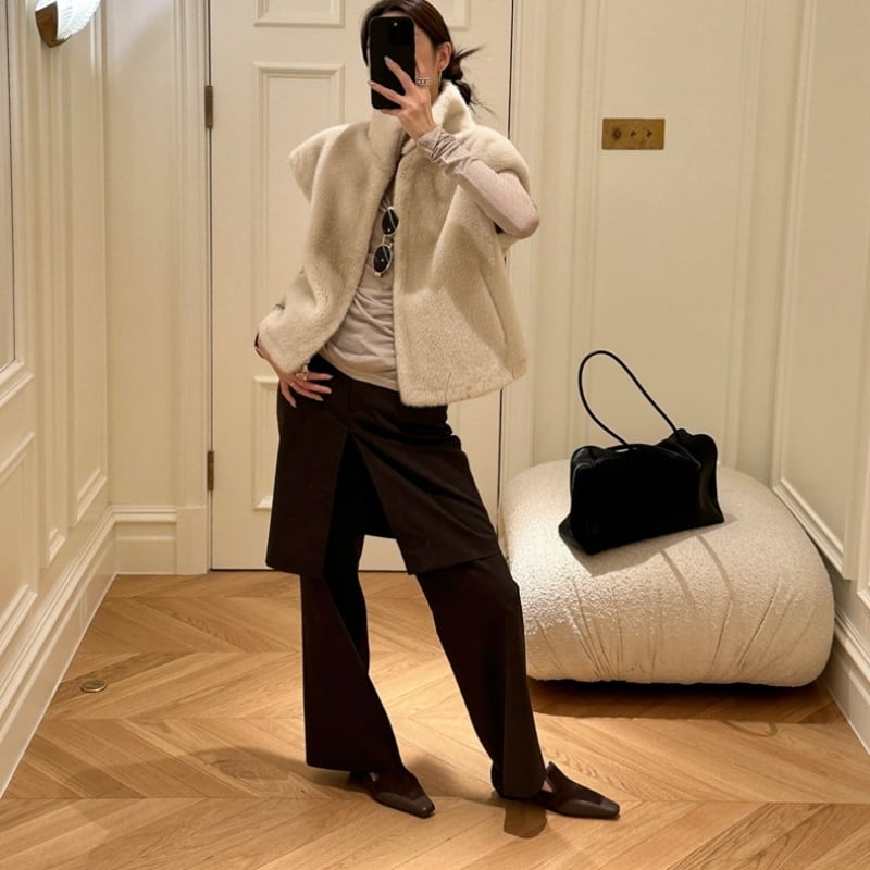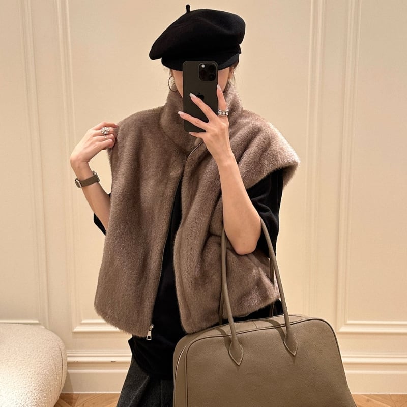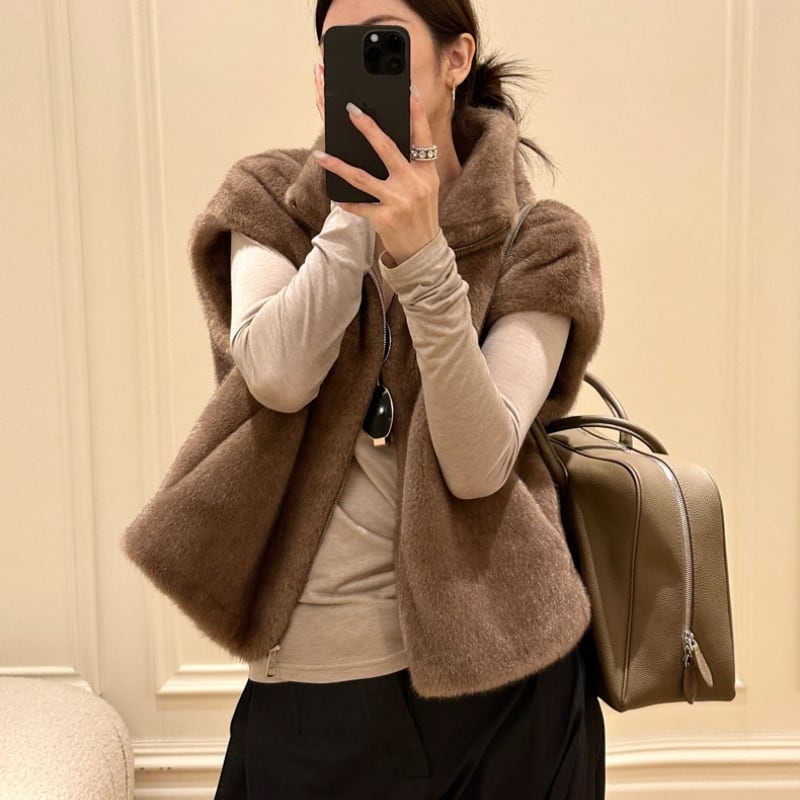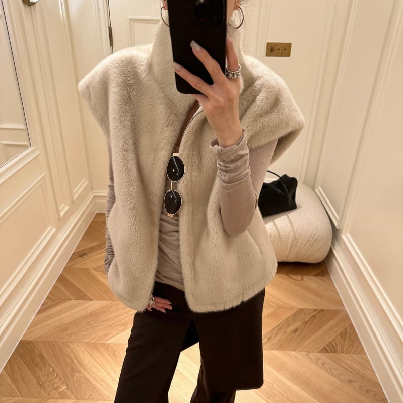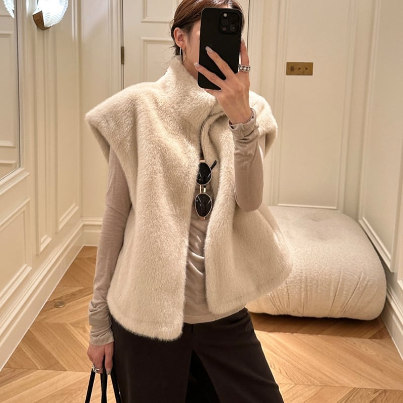 柔らかいフェイクミンクファーのノースリーブベスト。