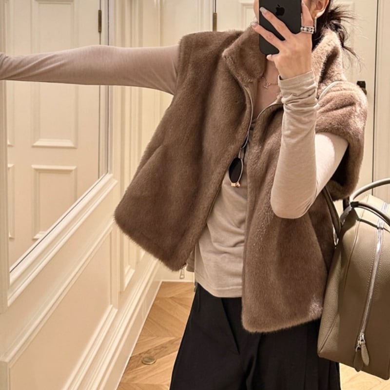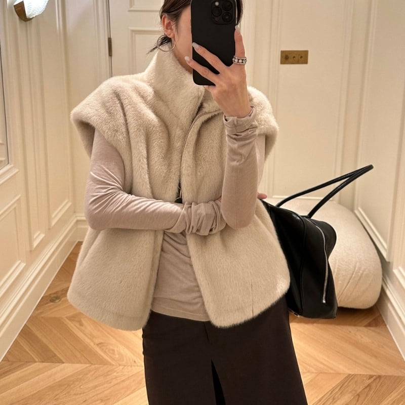 フェイクミンクファー ジップアップ ベスト ◆3color 204569