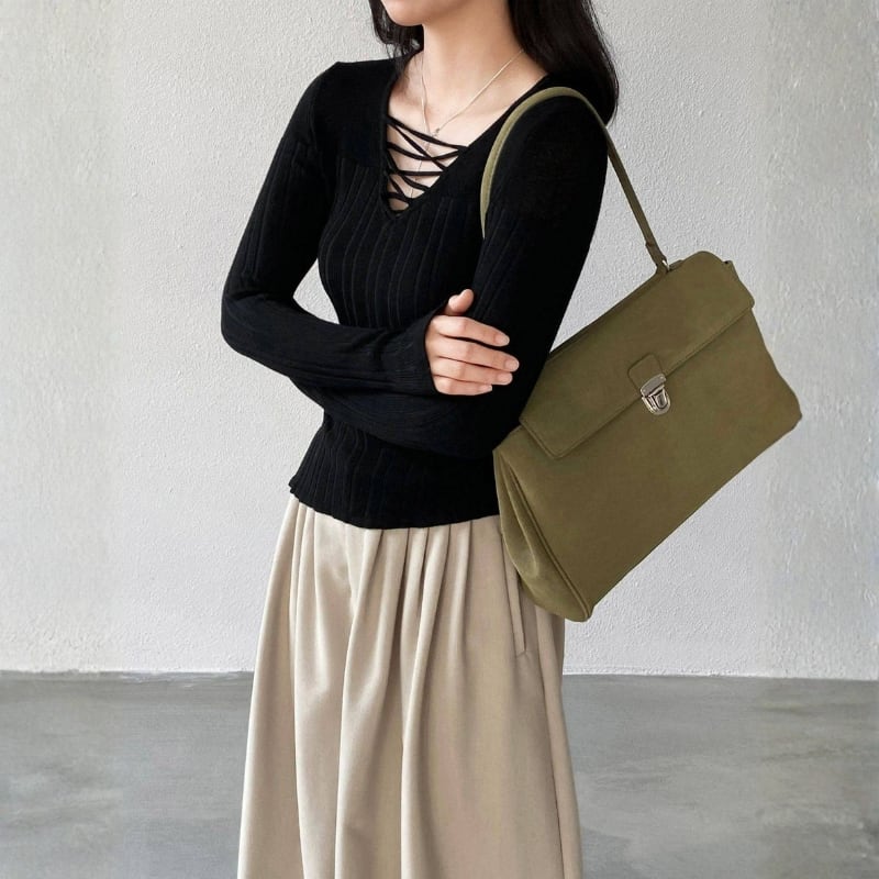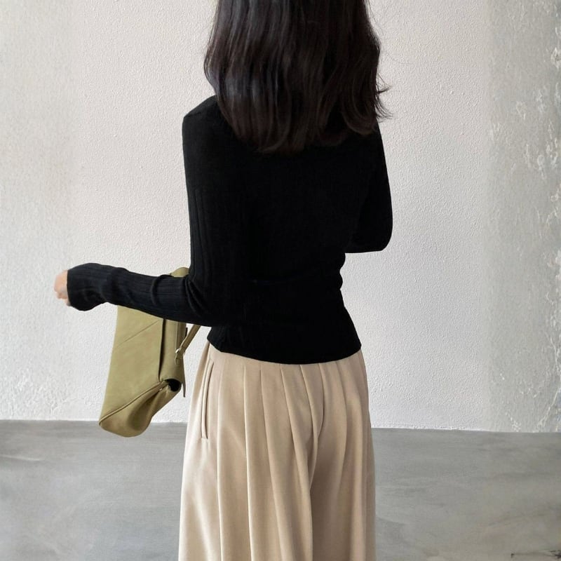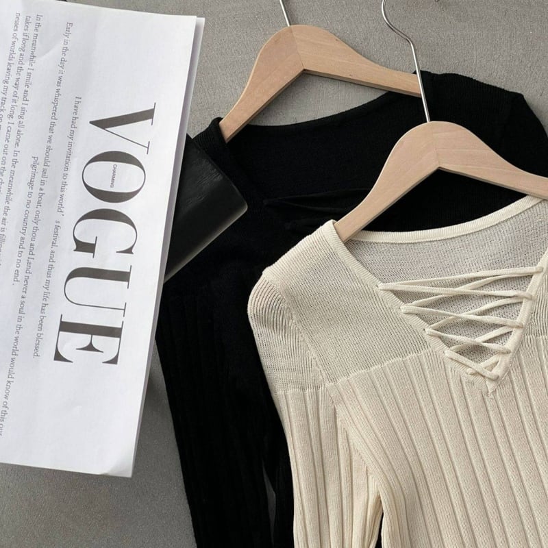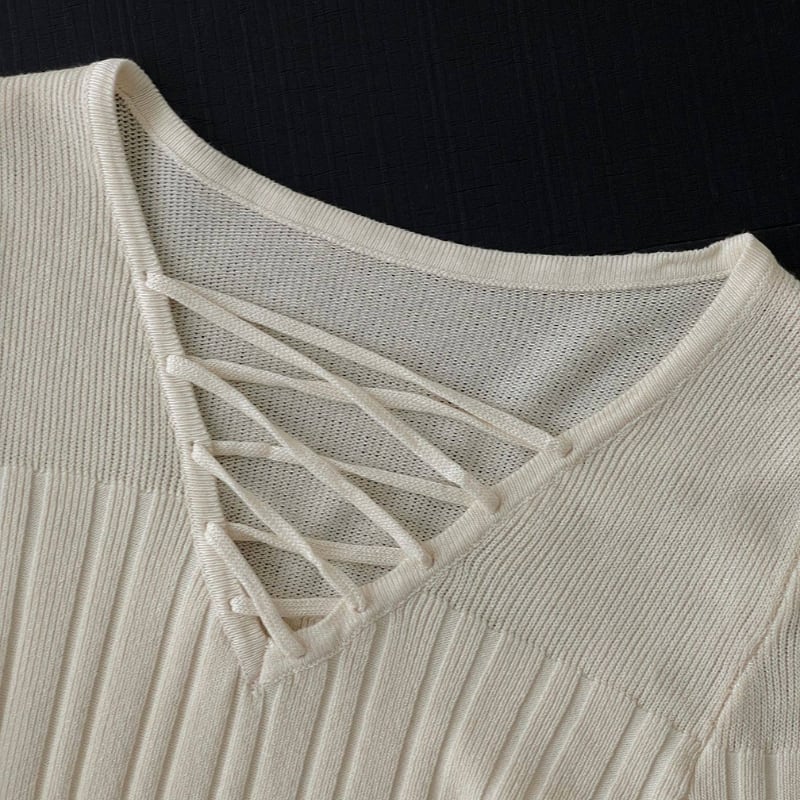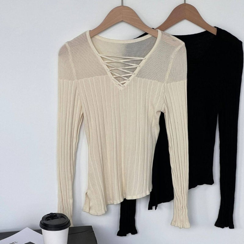 レースアップ スリムフィット 長袖ニット ◆2color 204575