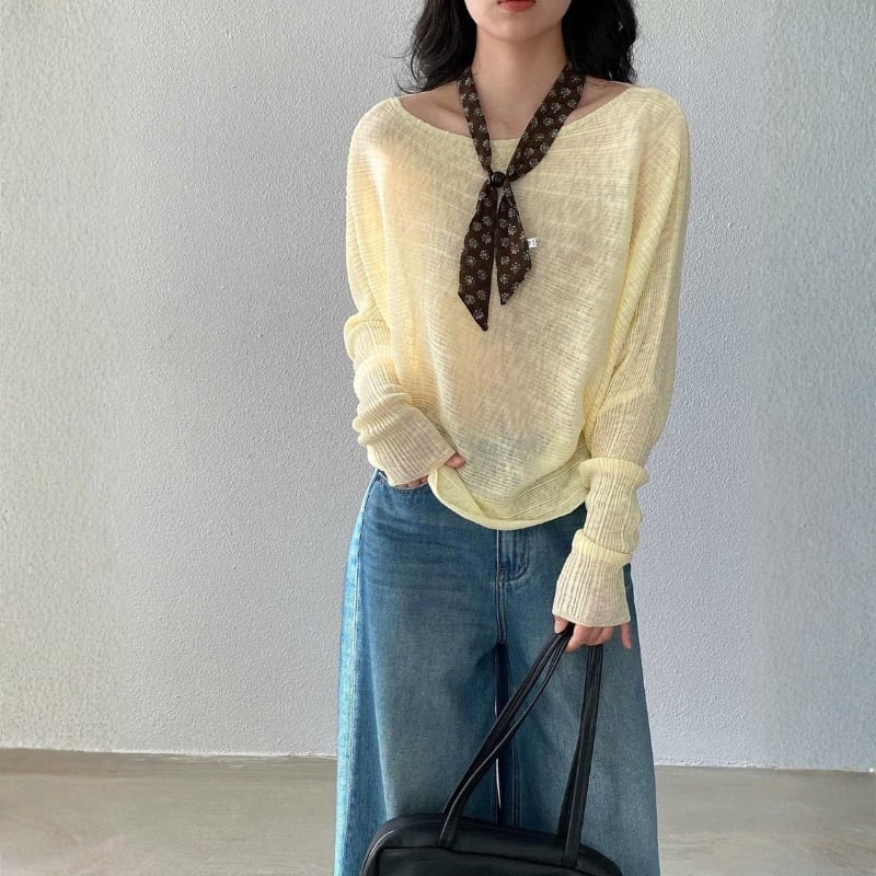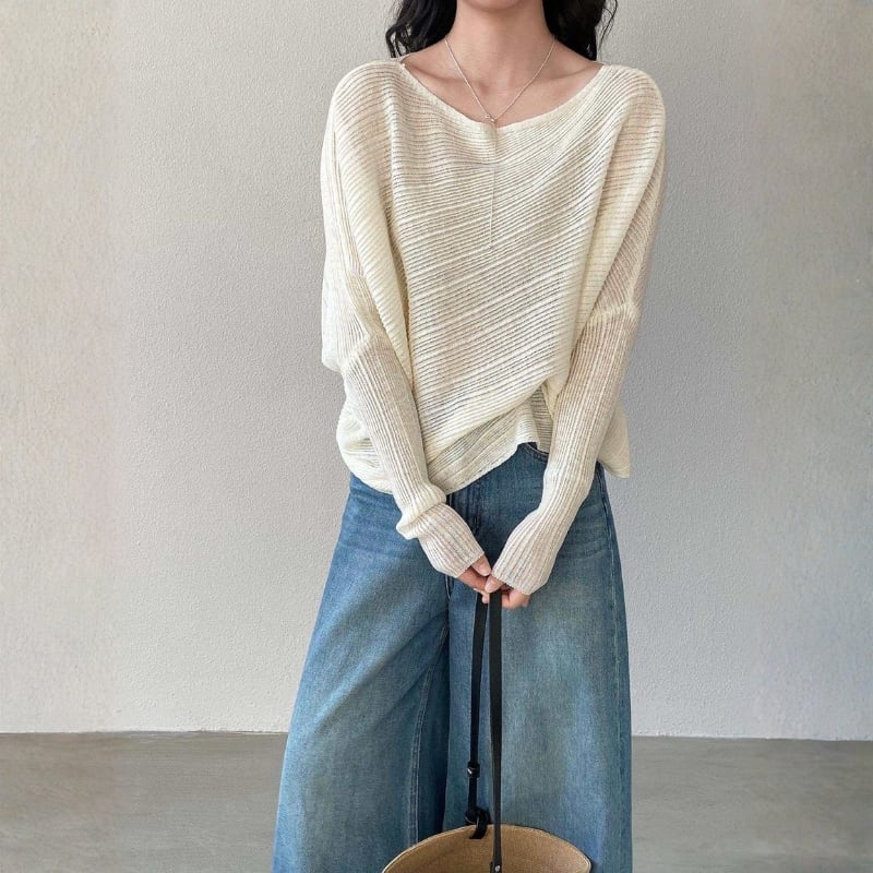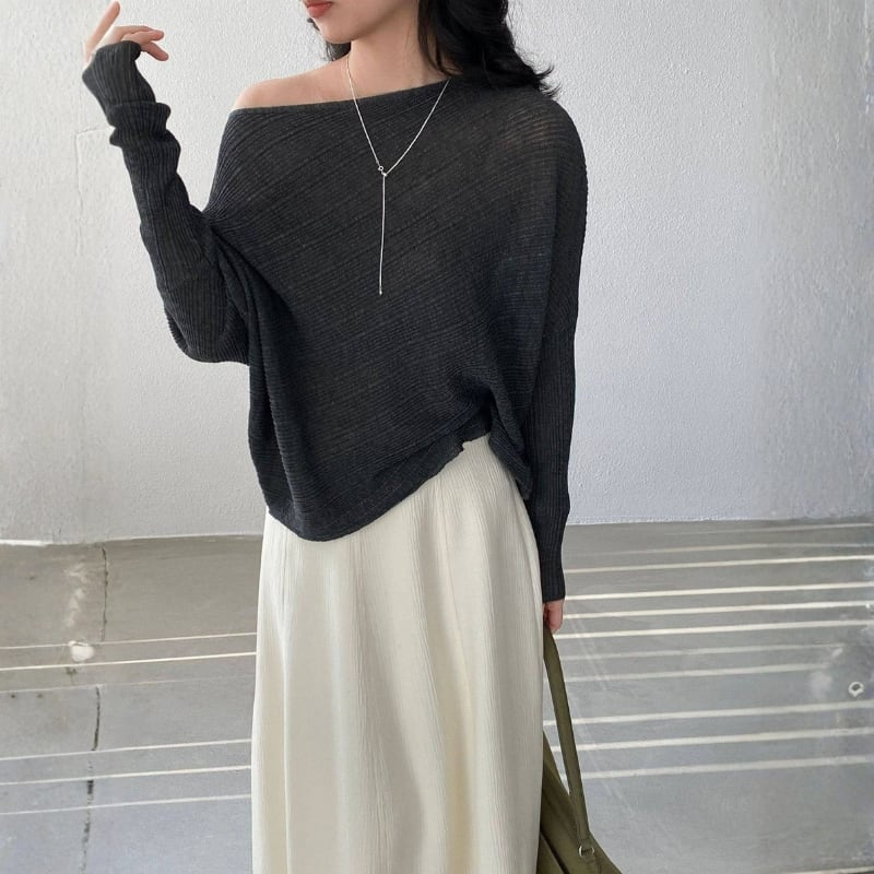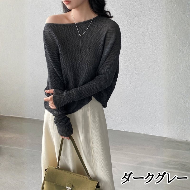 オフショルダー ドルマンスリーブ ニットプルオーバー ◆7color 204576