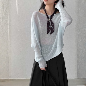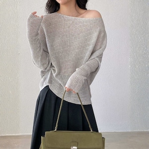 オフショルダーとしても着用できる、女性らしいシルエットのニットプルオーバー。