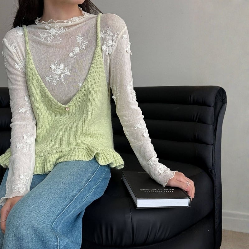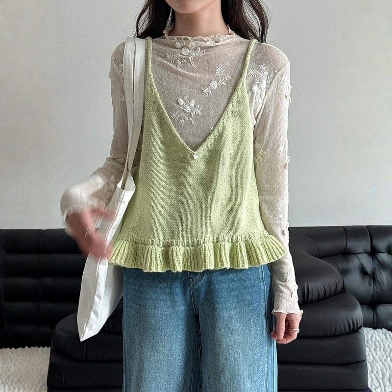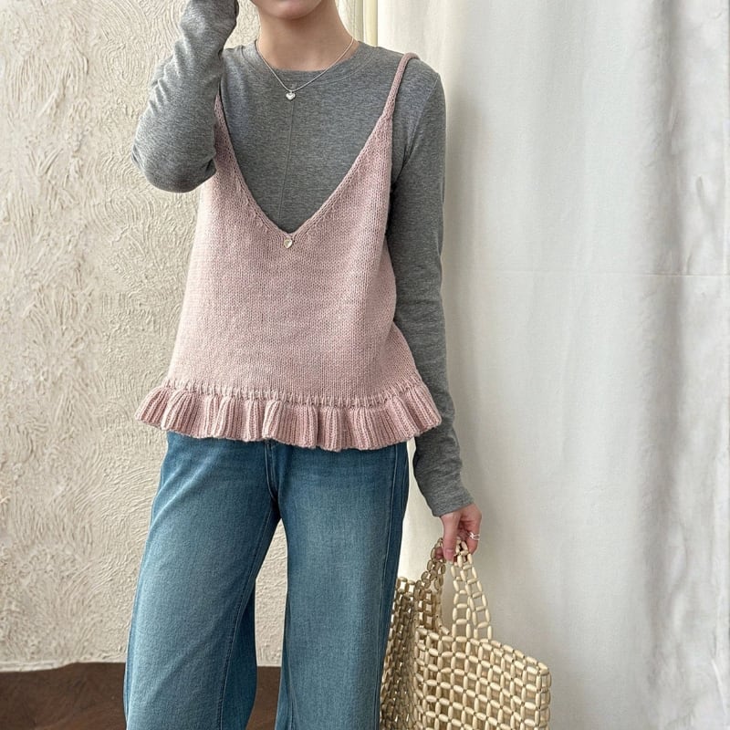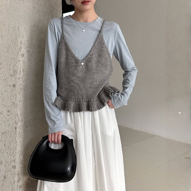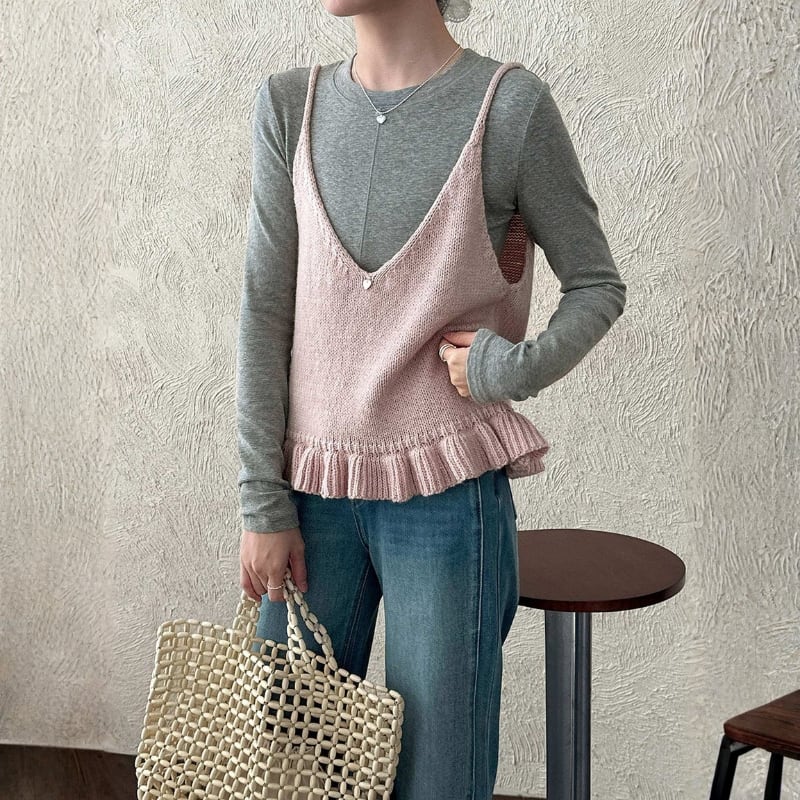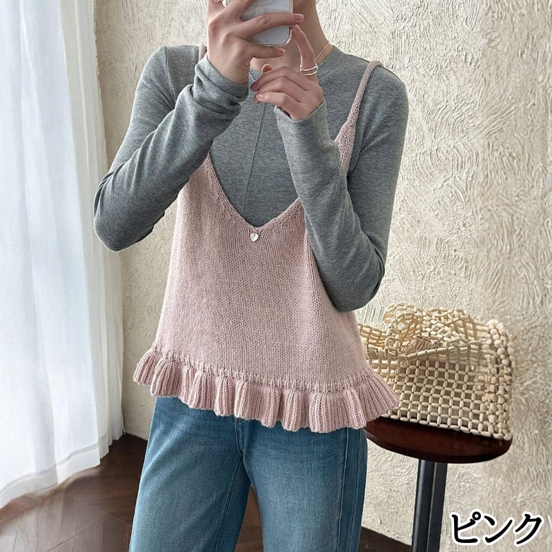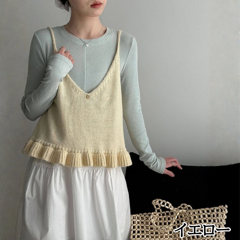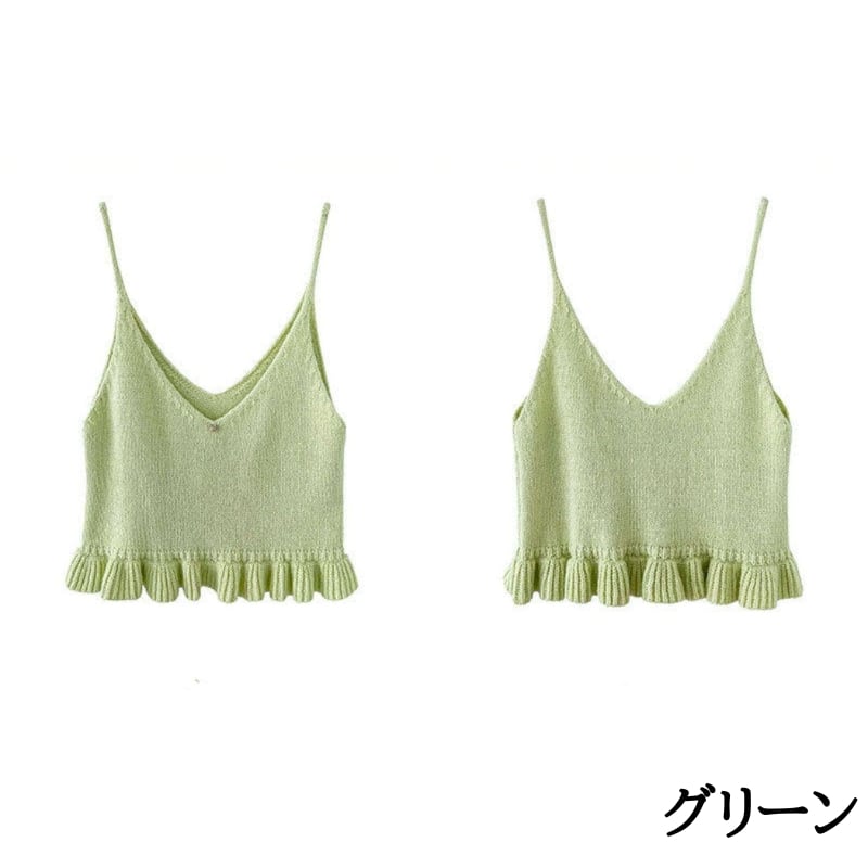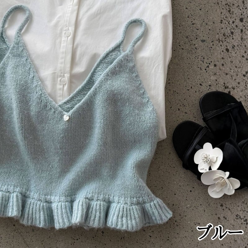 フリル裾 Vネック ニットキャミソール ◆5color 204578