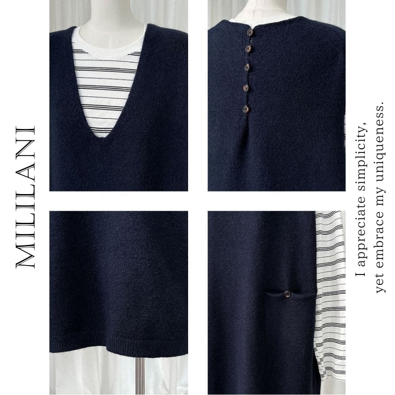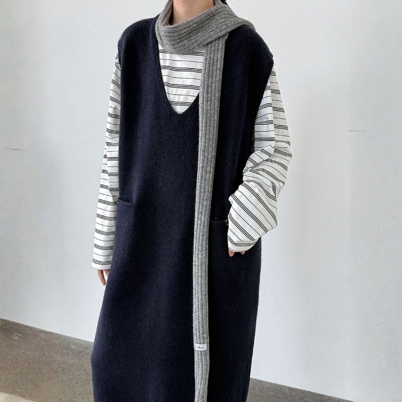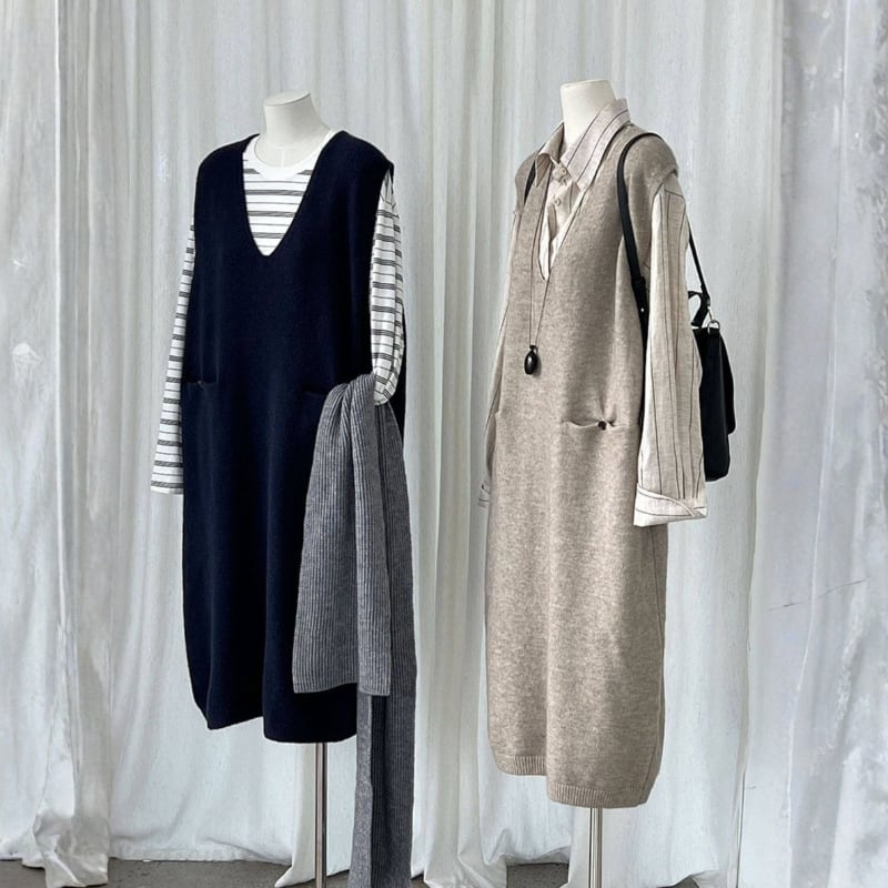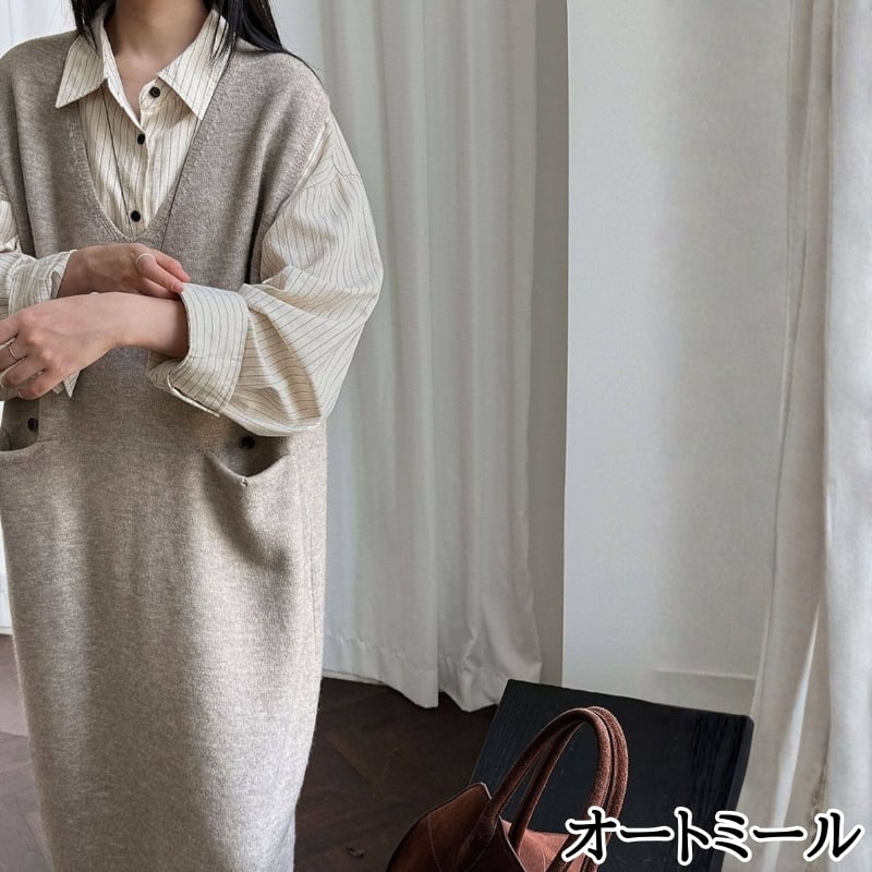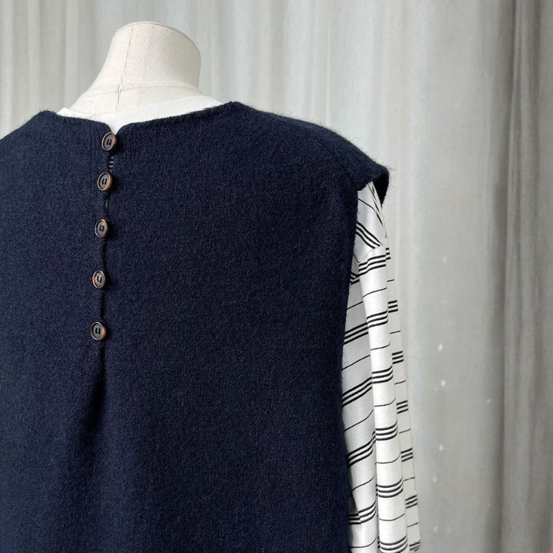 カットソーやシャツとレイヤードして、様々なスタイリングを楽しめます。