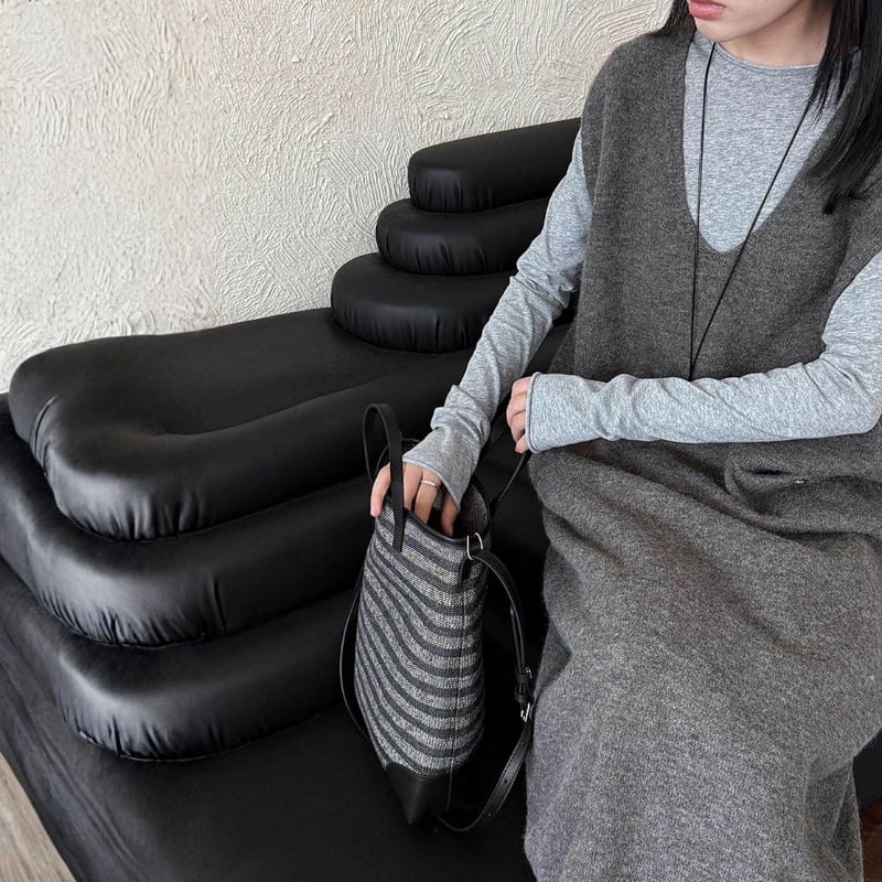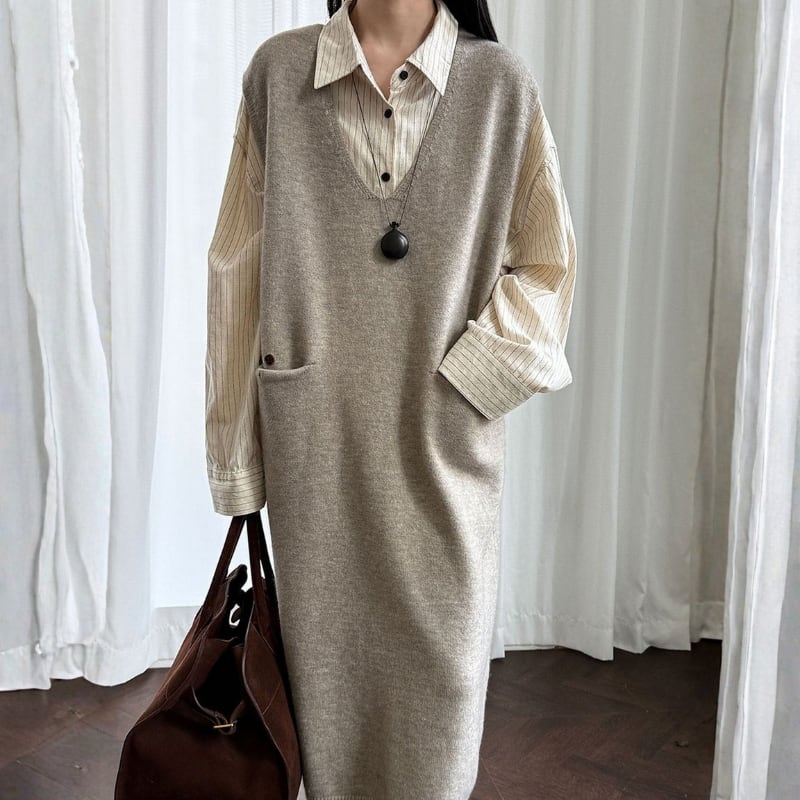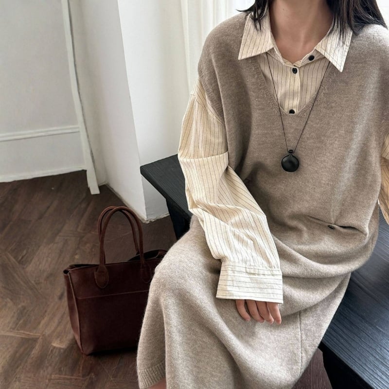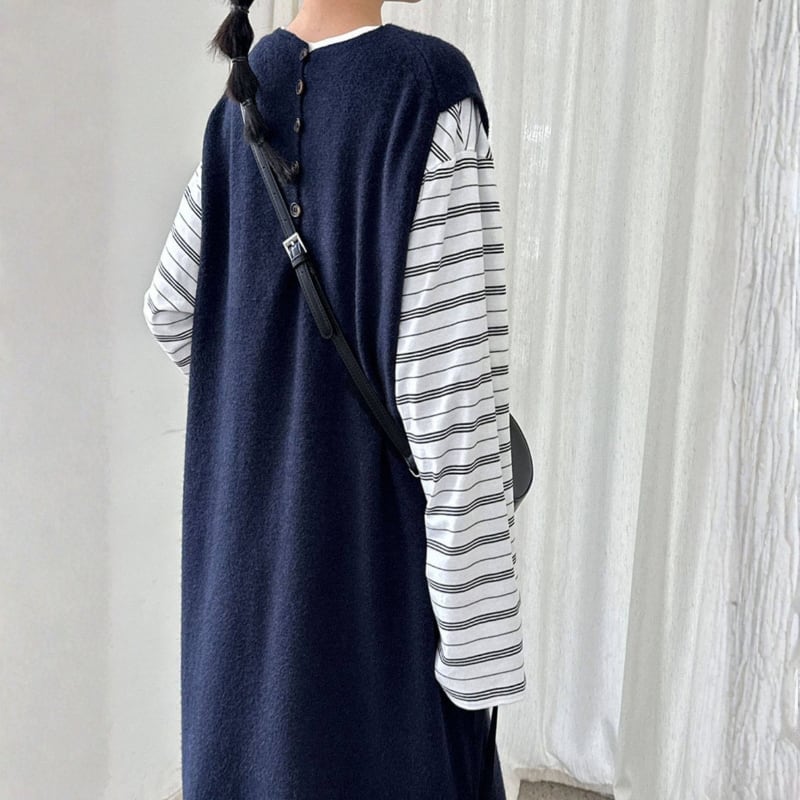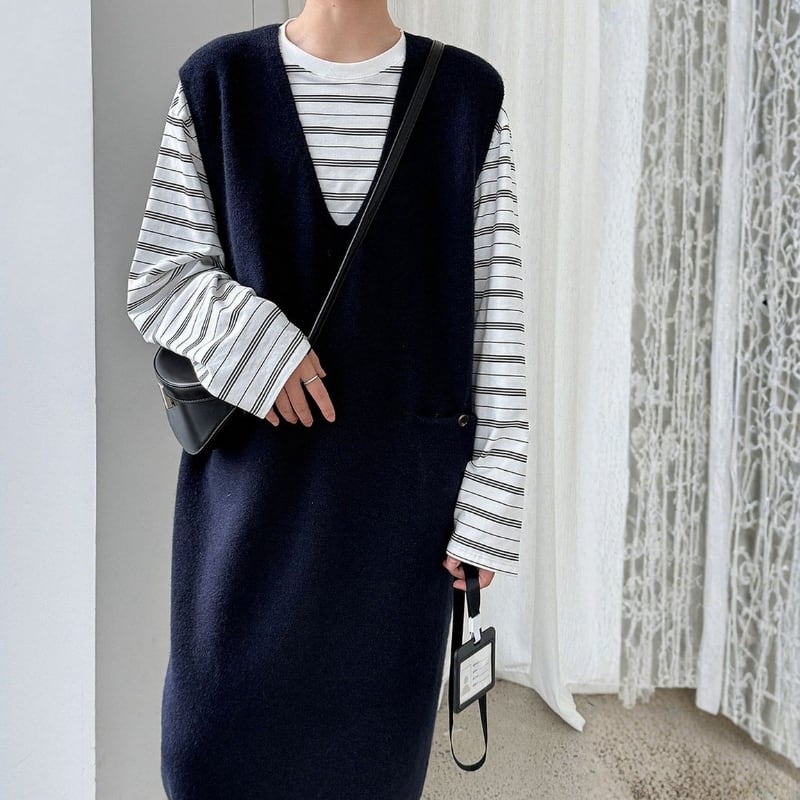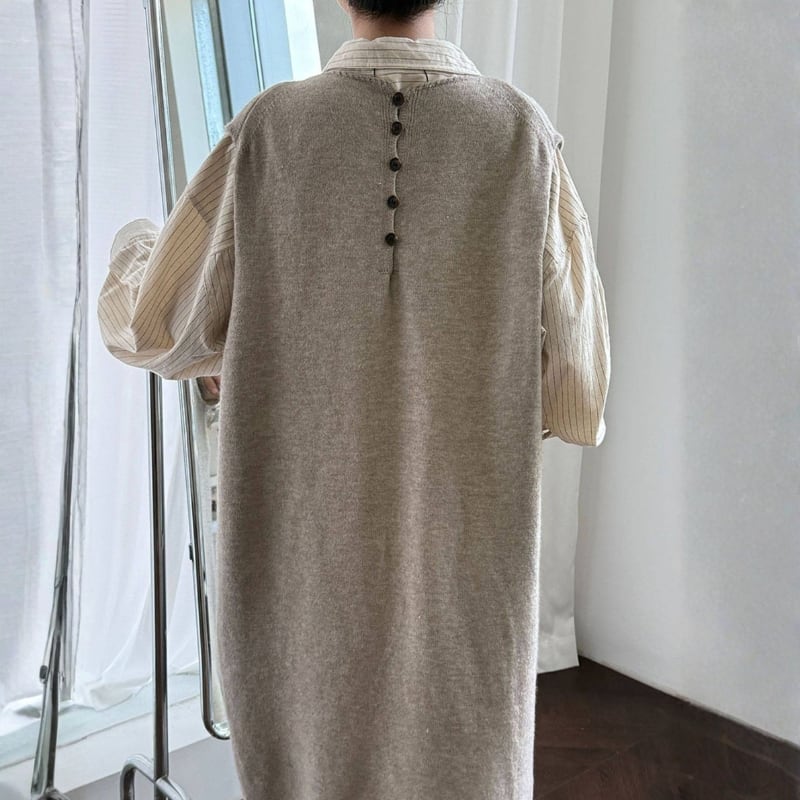 カットソーやシャツとレイヤードして、様々なスタイリングを楽しめます。