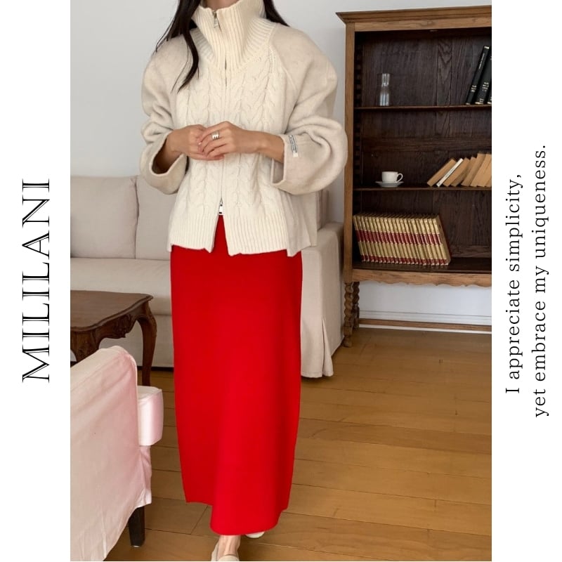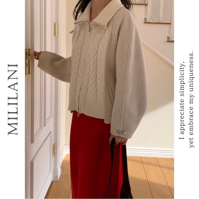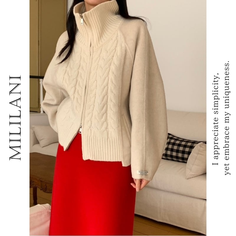 ラグランスリーブ ダブルジッパー ニットカーディガン ◆3color 204587